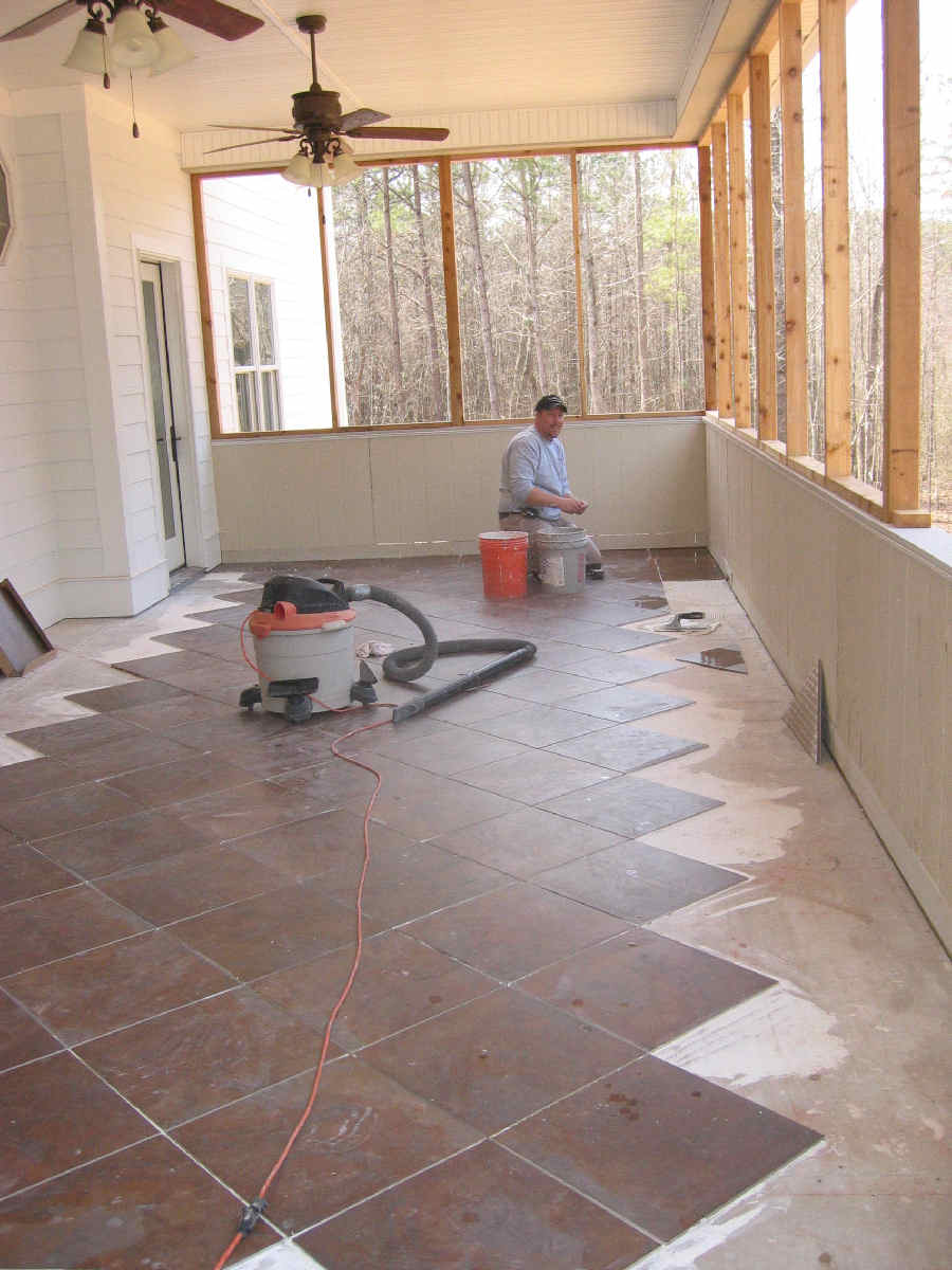 Say hello to Corey, the tile guy. He's working on the screened porch.