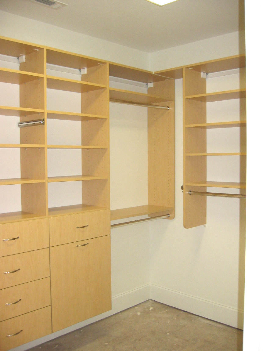 Daughter's closet. This is the biggest closet in the house. Wasn't originally planned that way, but when we made some floorplan changes during construction, she benefitted with the larger clsoet. My guess is that when she is a teenager, there will still not be enough room for her clothes (and she'll still not be able to find anything to wear).