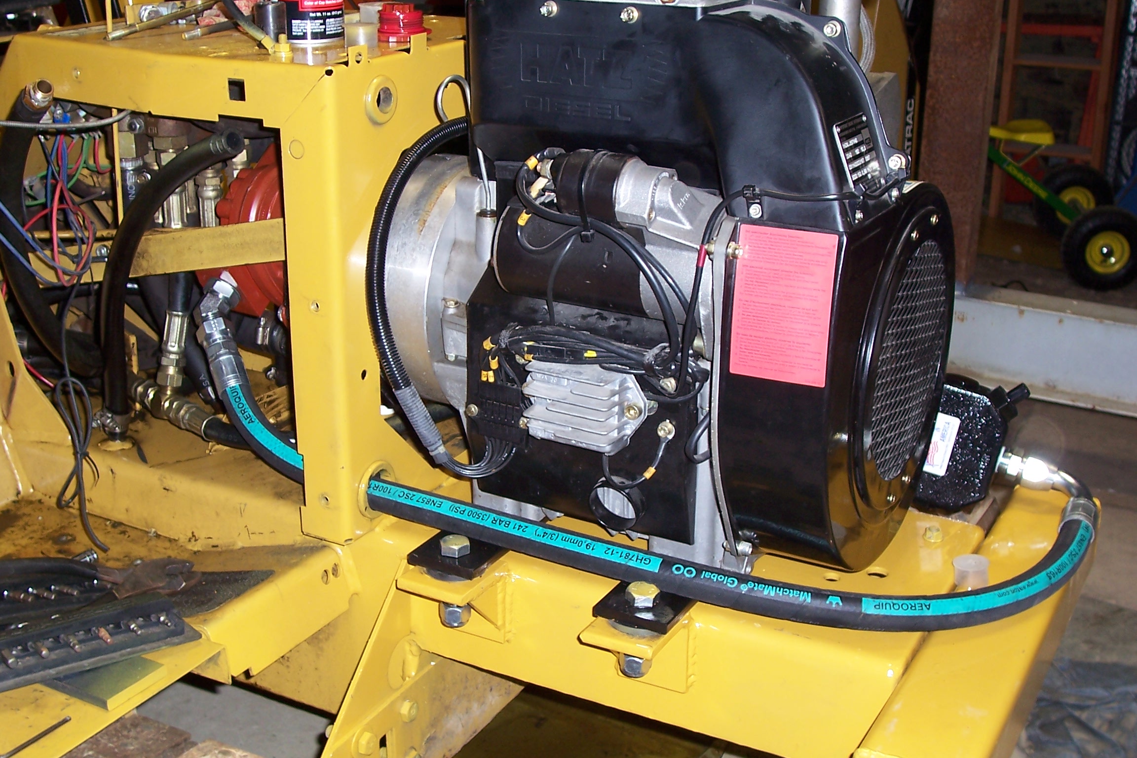 J_J, Im not sure how much flow is coming out of the flow divider as it is infinitely variable flow between 2 and 12 gpm. The Hatz is the 2G40 diesel engine. rated at 23 hp at 3000 rpm. I thought by using the flow divider that it would split the 21 gpm pump out put in to 14 and 7 gpm. So when im using the track drive at 14gpm it would have enough power. The hose on the left of the top valve is coming from the adjustable flow divider. The blue hose coming out of the right side of the top valve, is feeding the lower auxiliary valve. I have the Brand power beyond plug, it is not currently hooked up. Anyway The machine doesn't do too bad with this pump, its the loader function that is giving me the fit.