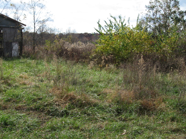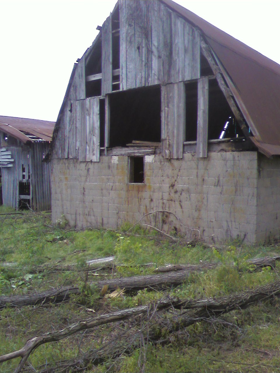These are some pic that i have of when we first bought the place. Like i said it was very grown up and have since tore down a barn and cut down about 50 locust trees. The property has three barns and now down to two. Had to do some modifying today to fit the tractor in. Used to be an old hog barn i believe. Also found the old spring which has a block coffin type spillover. I will get some pics eventually. The spring is running like crazy and may be a great place for a future lake or pond. So many ideas and not enough $$.