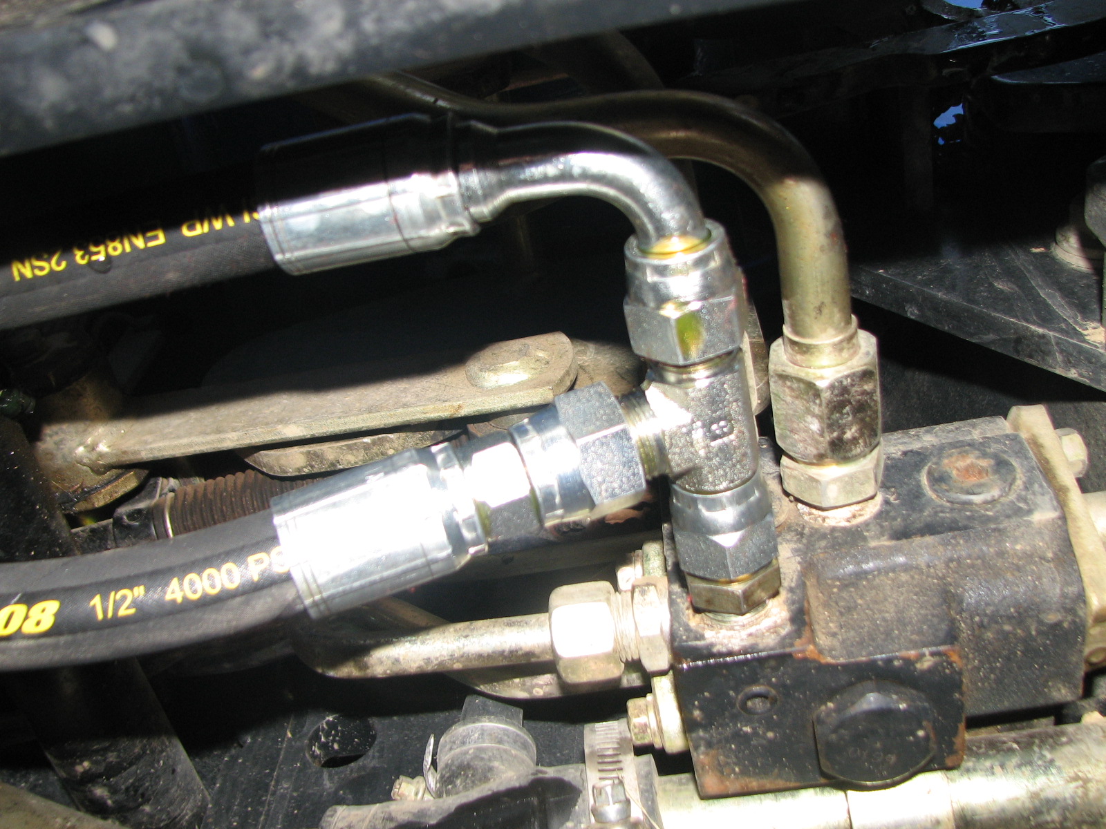 IMG_0301.JPGDecided to take off the return to tank line from the FEL and use a run tee to connect the new valve return line.