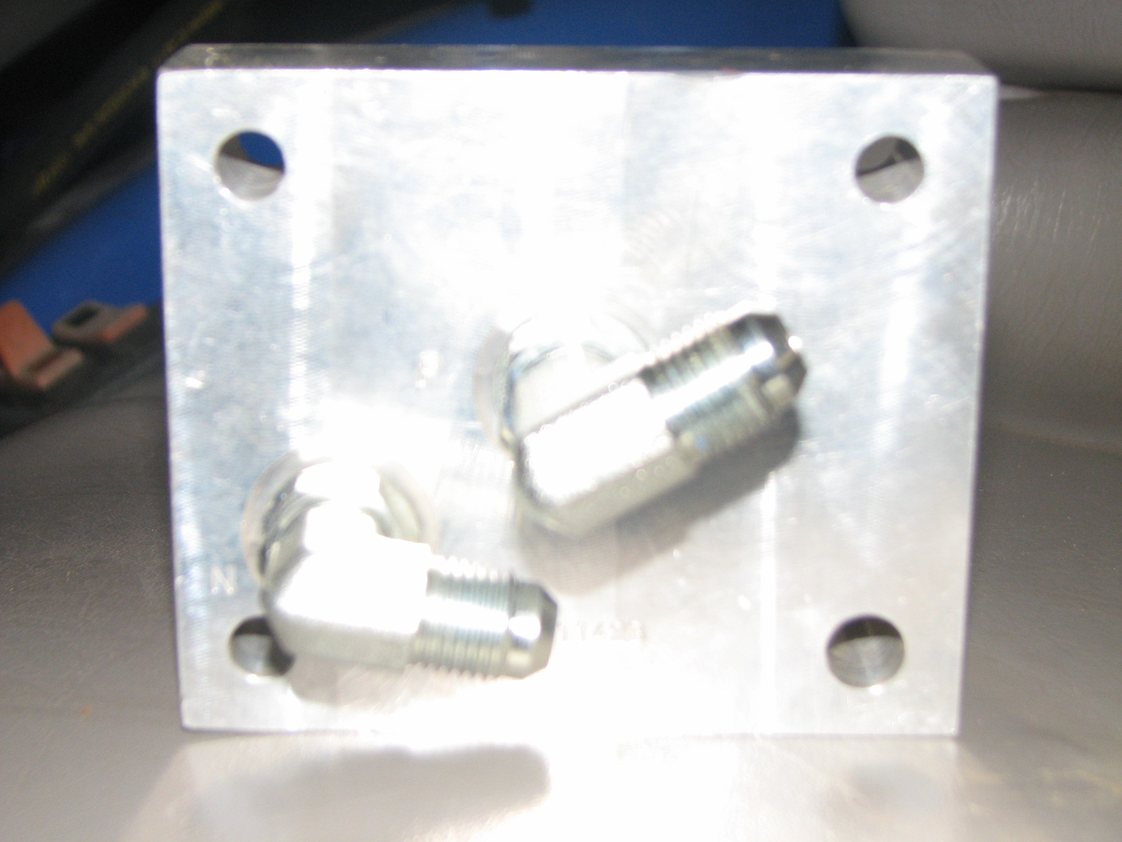 new hyd block will replace oem cover.jpgnew alum. hyd block.JPGnew return to tank fitting .JPGNew valve with pb port.JPG