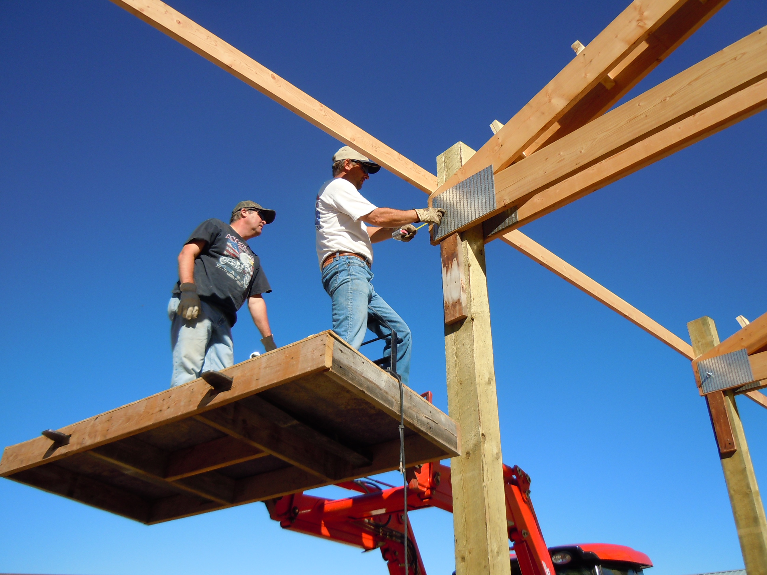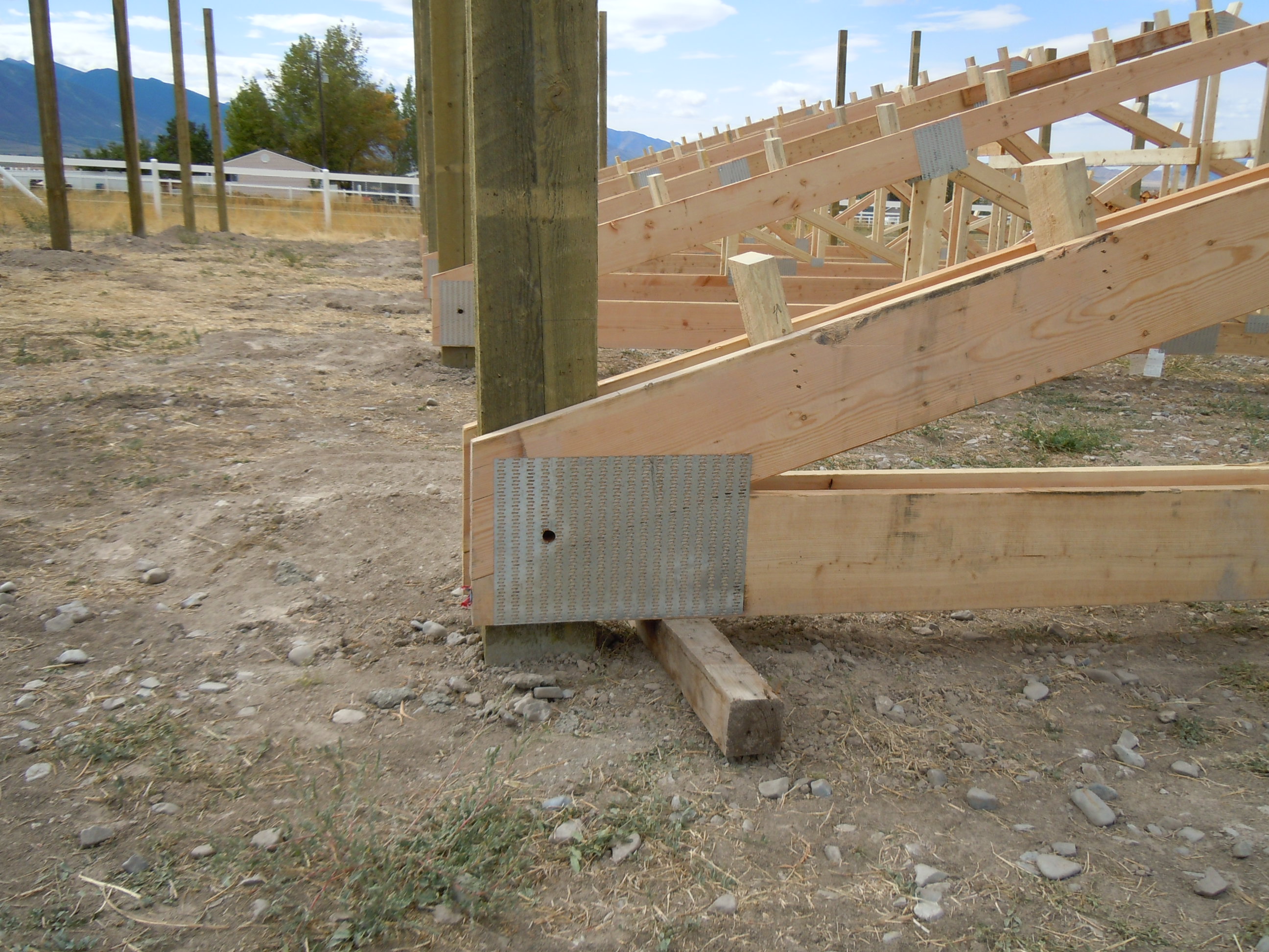 Here's the best pictures I have of how the trusses are attached to the posts.