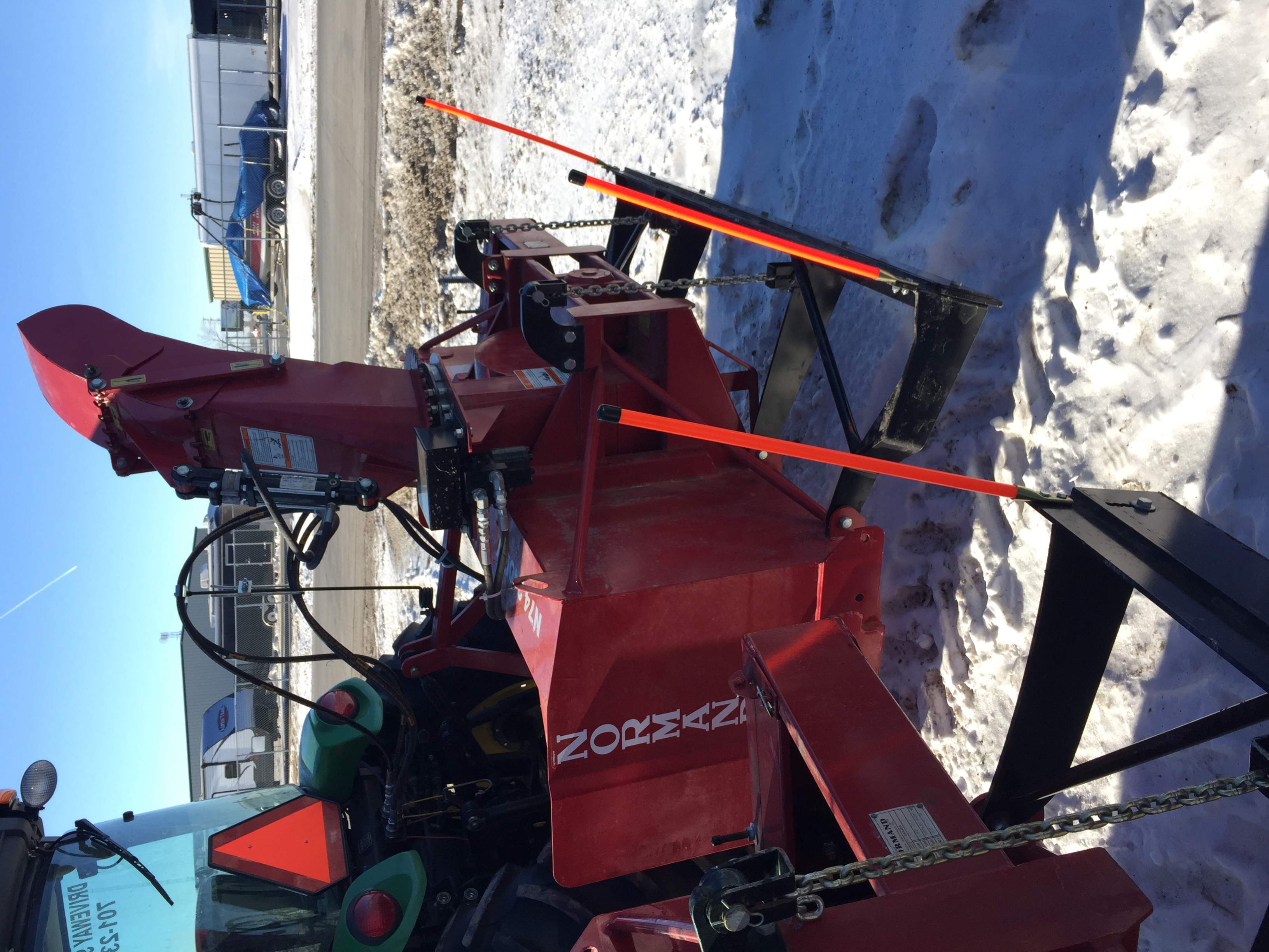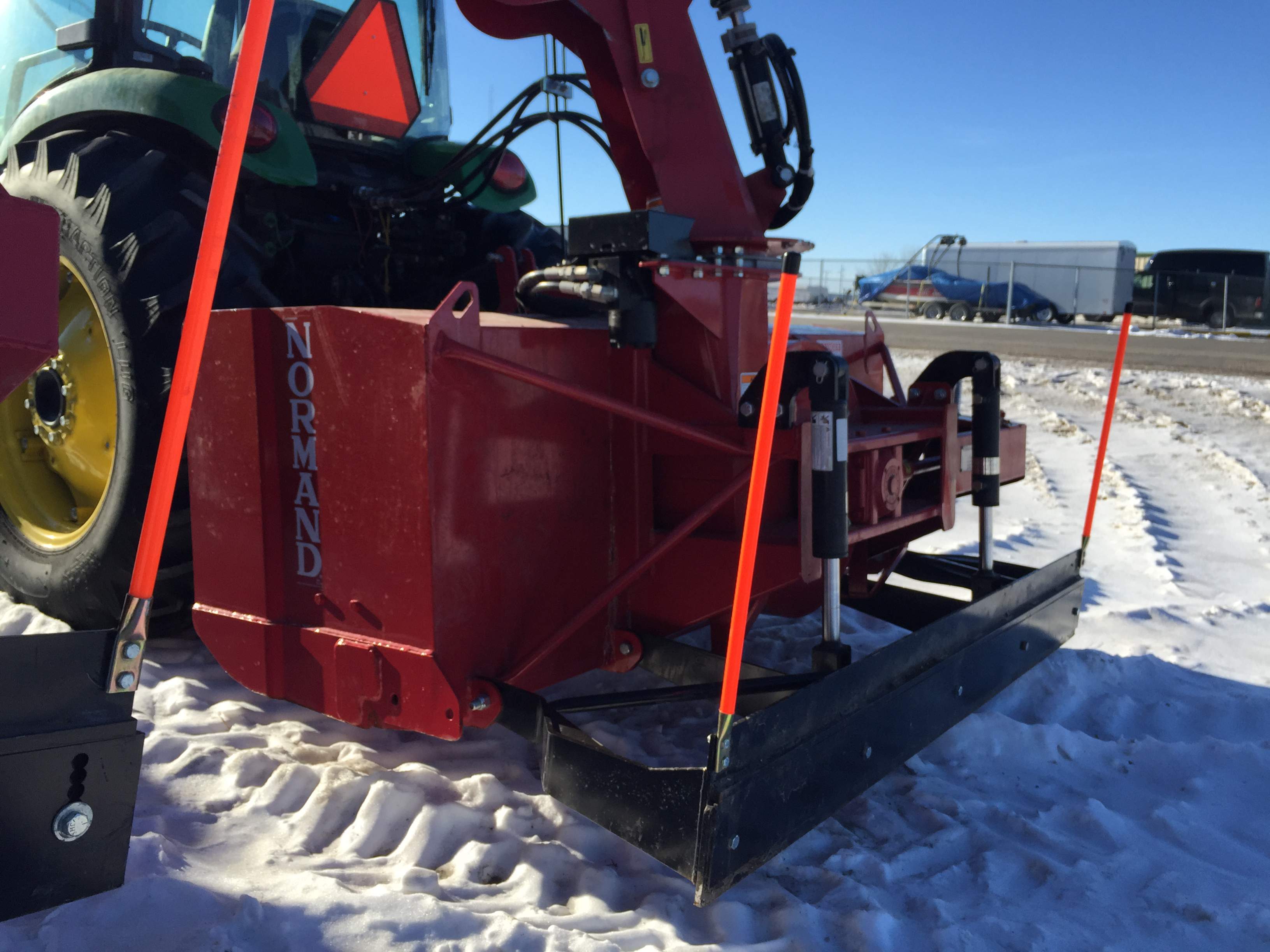 The pictures below show them both ways, hanging from a chain, or on cylinders. Notice that the one with cylinders doesn't have any hoses hooked up. I actually have vented plugs where a hose would hook up, so it's basically working like a chain, they just float along the ground. If the hoses were hooked up then the entire weight of the blower could be put on the rear blade, really scraping up hardpack well. If you guys have any questions about blowers I'd be happy to help, we use them a lot. Just shoot me a PM, or even an email if you want. steve @ fargosnow DOT com (hope that keeps the spammers away!)