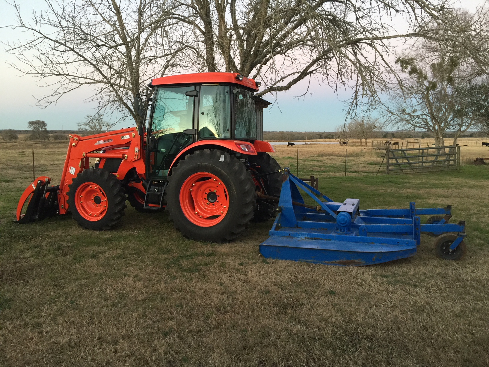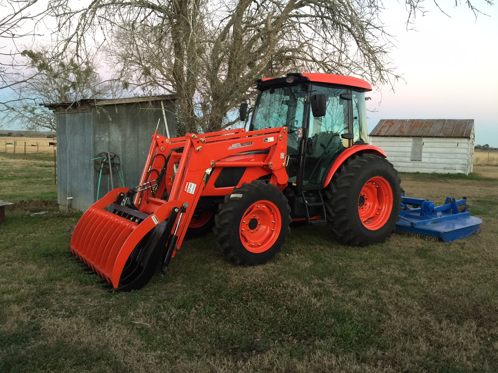 Here are a couple of pictures of our new RX7320 right after it was delivered and was still clean. So far we have used it cleaning up some old brush piles, dug a 4 foot deep hole with the loader, mowed the farm roads so you can see where you are going, and used the loader to move some equipment around.