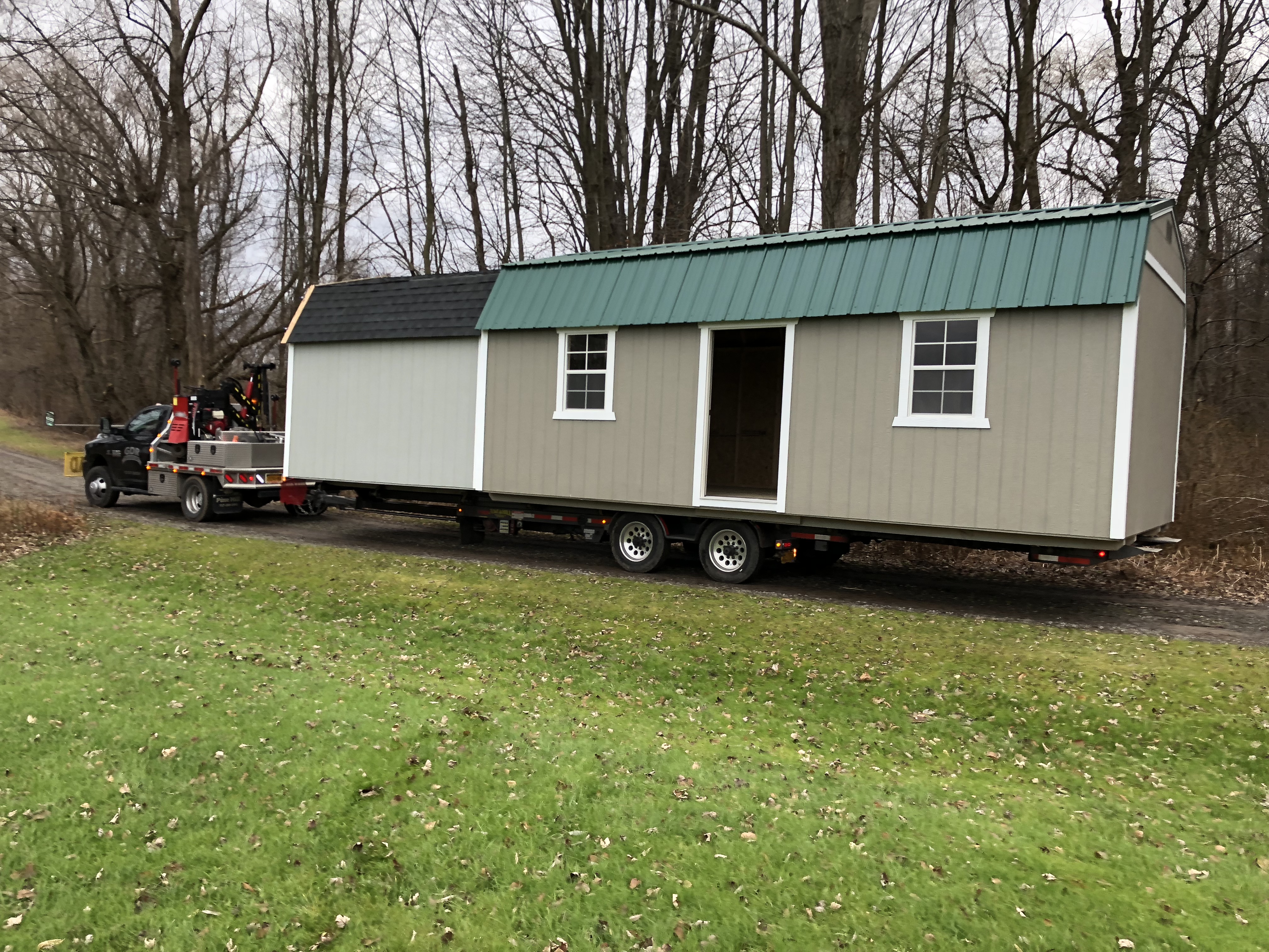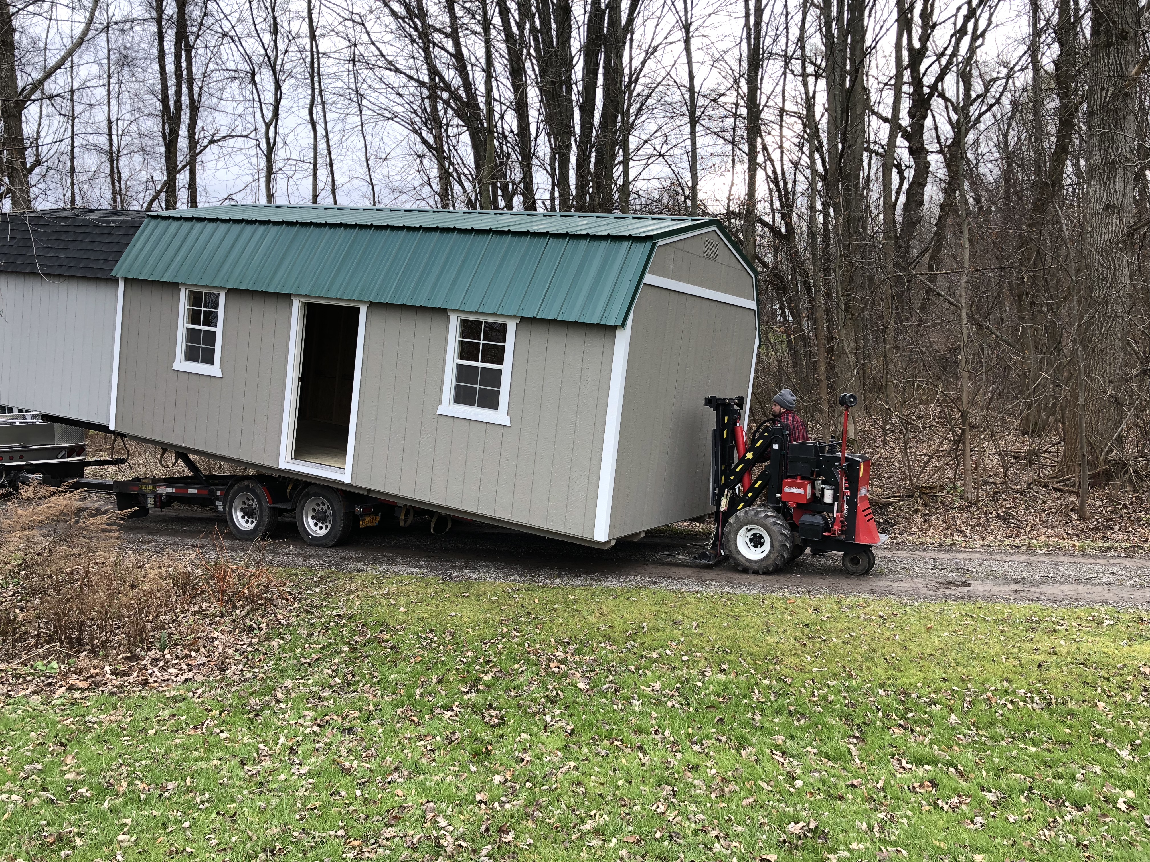 Purchased a 12x24 storage shed to be built about 5 weeks ago and it was just delivered. I was very apprehensive because I have a 10 ft wide 1/4 mile long driveway and itç—´ been very wet. The driver did get off the driveway at one point and I thought we were in big trouble because the tires really sunk in.