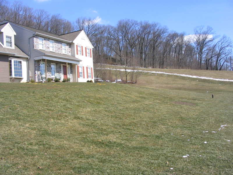 Last pic of the front hill. I measured the slope from 14-23 degrees. The parts over 20 are very few and are dips that I will be correcting this summer now that I have a great tractor with good FEL capabilities. /forums/images/graemlins/grin.gif