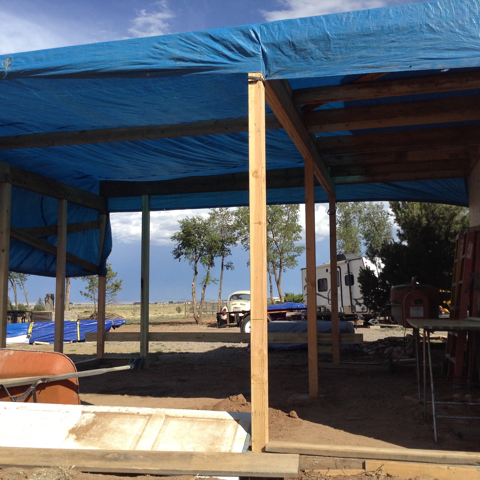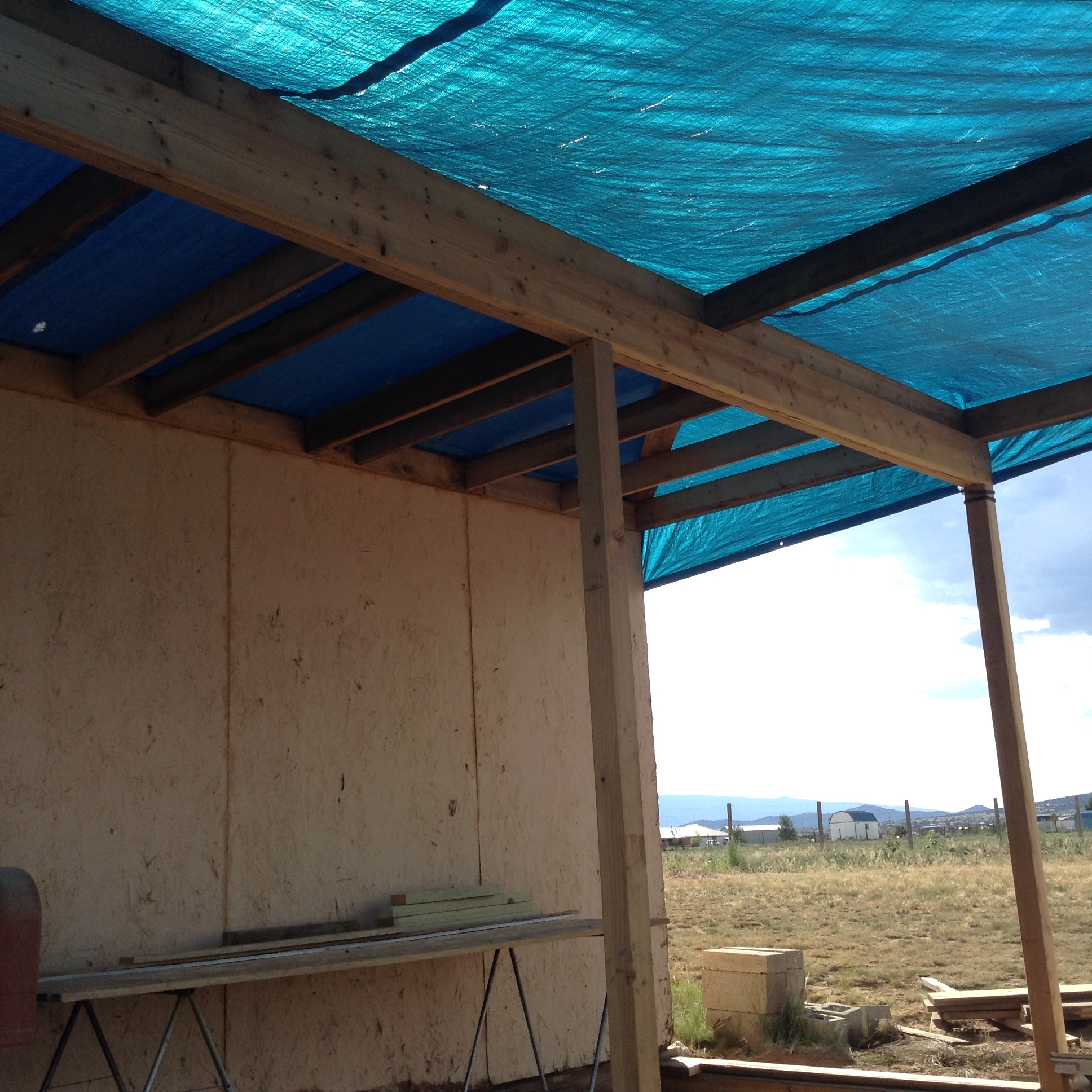 The temporary tarp certainly was a helpful idea for protection from the blazing sun.