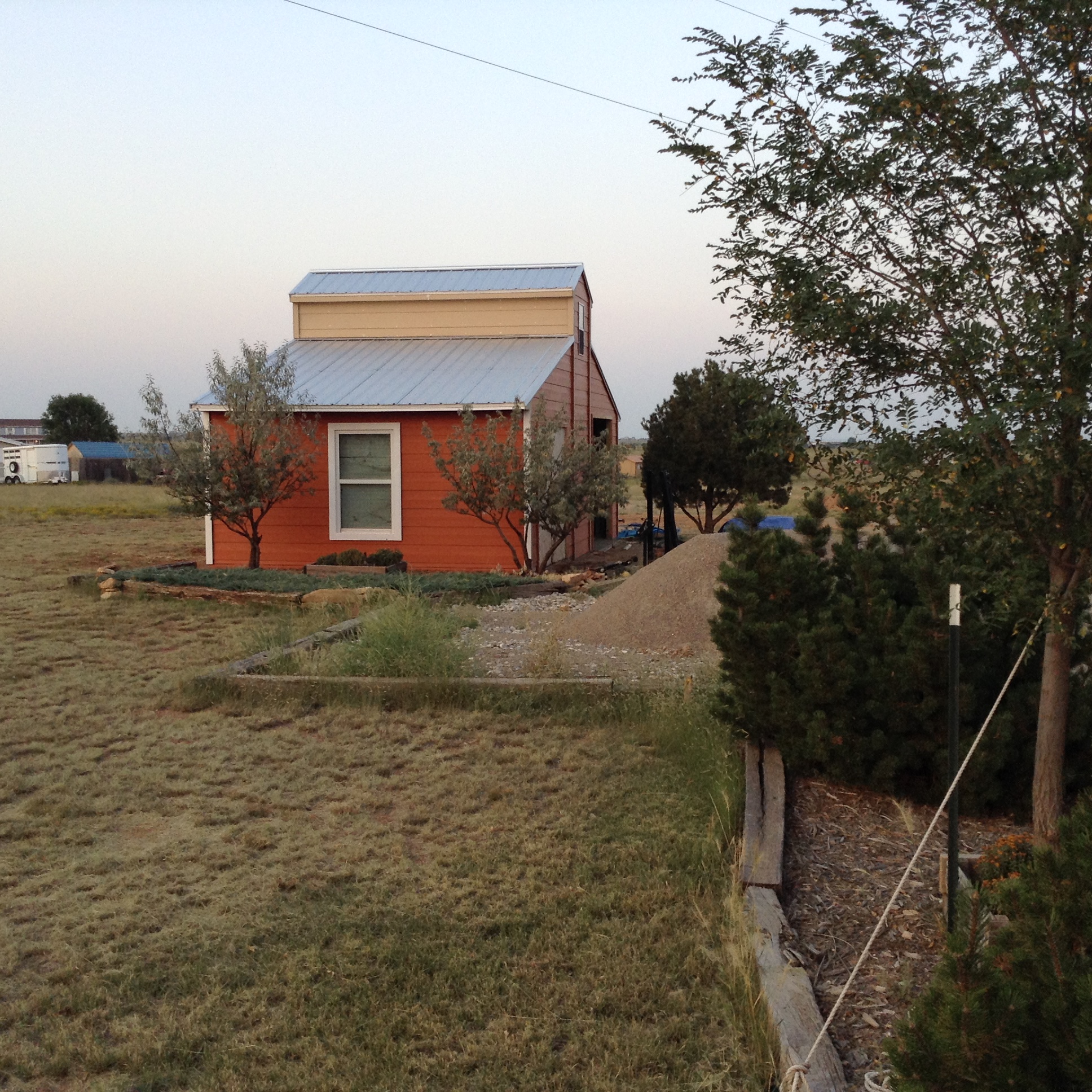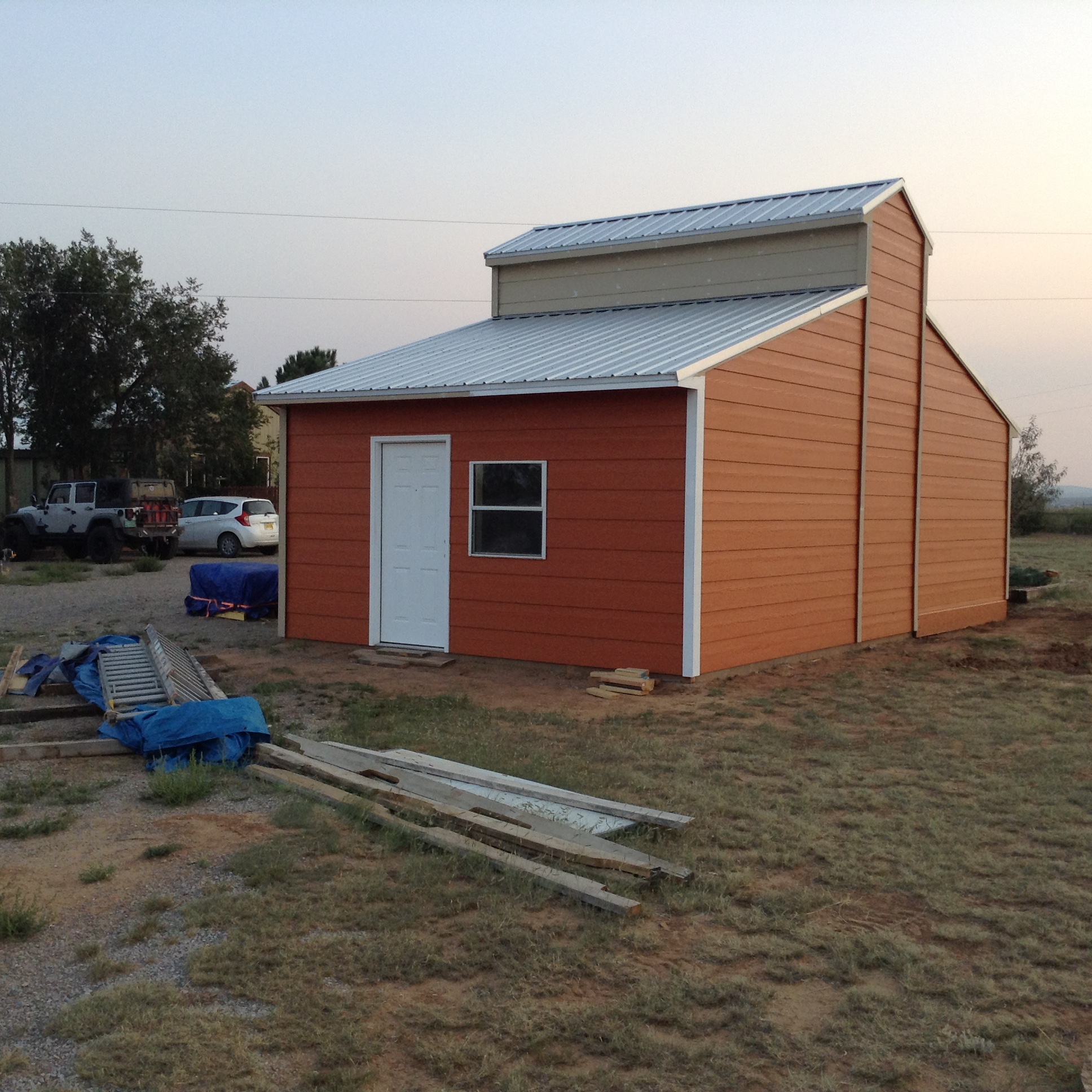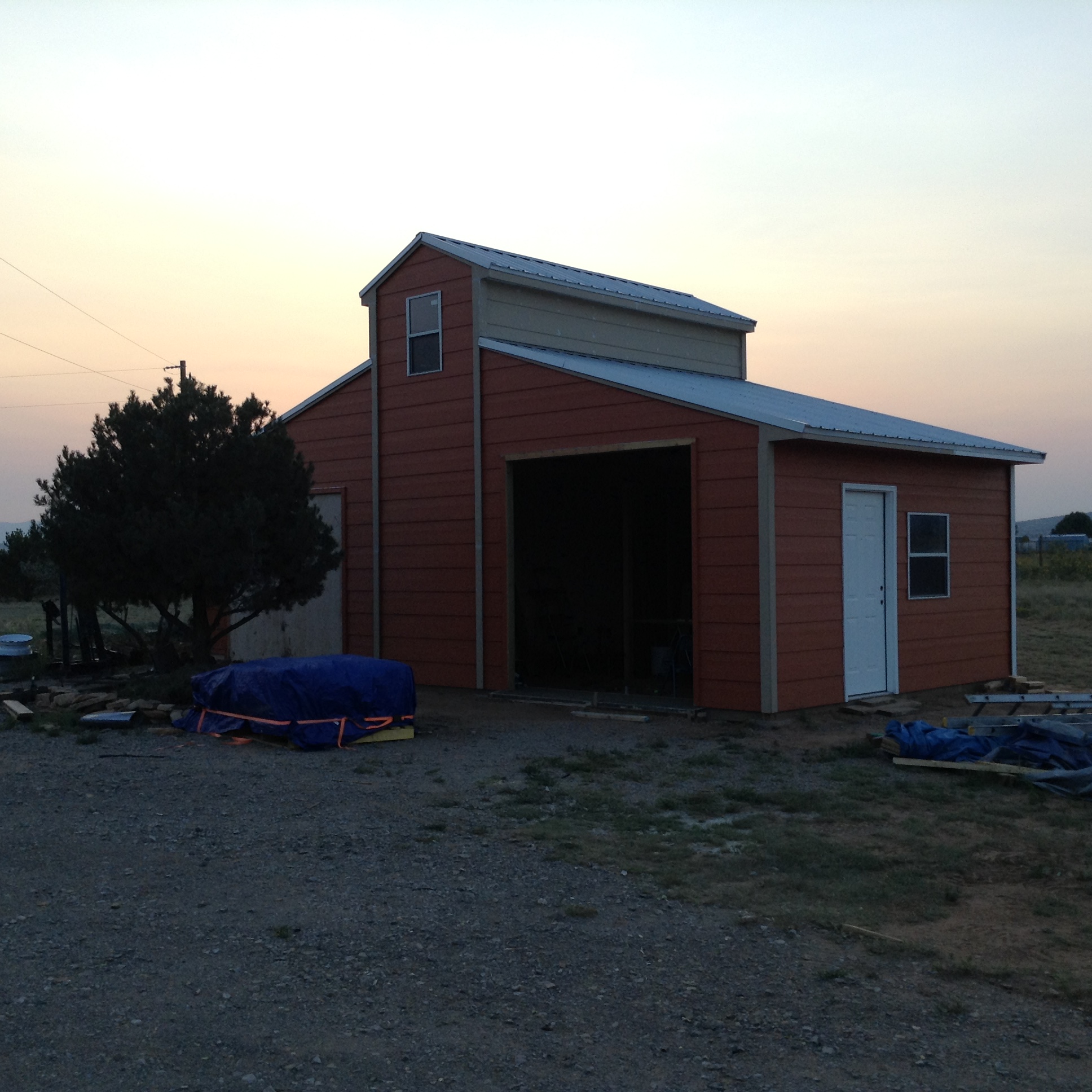 Well it's been over a month of bustin hump on the days off from work, but the new shed / shop is almost complete on the outside. I have a bit more painting to do and install the garage doors. Then I get to work on the wiring and interior finishes. Here are a few updated pictures. One is of the sun setting over the mountain, pretty nice because of all the smoke haze coming from the wildfires up in the NW.