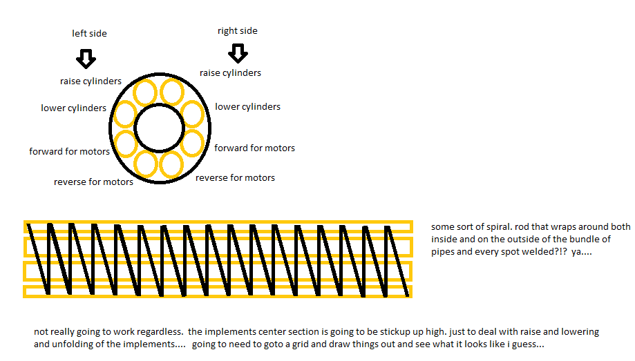 i have been pressing the "implements" off to the side in all my thoughts up to this point. with primary focus on the SSTT (sideways snake train tractor) every implement is going to be different. and at moment, not sure how to even handle implements. good portion most likely i have not really taken time to really sink any thoughts into them. and have for most part, just took them as a no brainier. but i know that is just asking for a train wreck to happen. i am actually more worried about the "conversion" between tillage (plows, discs, rippers, etc..) seeders/planters. but more so worried about switching over to the harvesting.