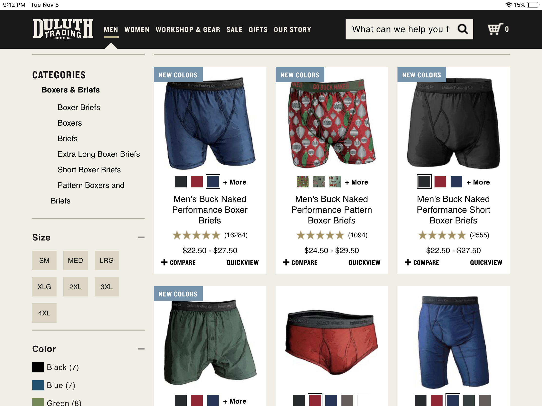 Duluth undies (calf length) have a black label on dark green material. Not realizing that I had them on backwards, I was quite embar assed when I had to drop my pants/shorts to take a pee in the urinal at a church function. I'm not sure what the "others" think my problem is/was.:eek: