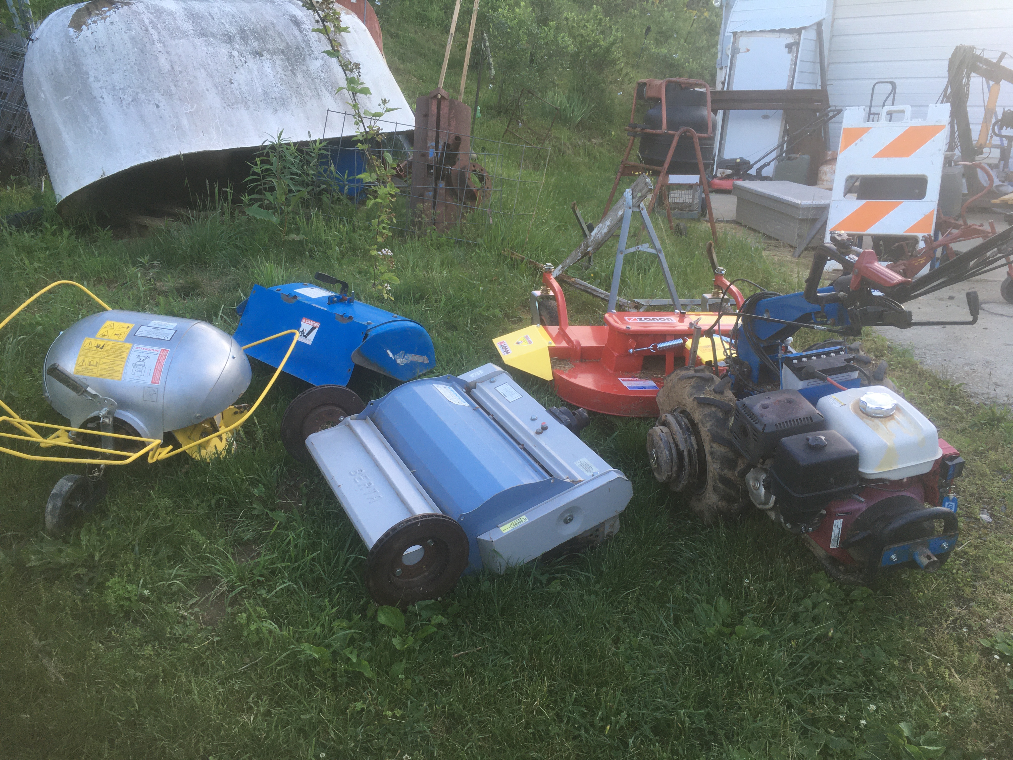 - BCS 850, Kubota BX2230 w/FEL, mid mount mower, 41" tiller Kubota L3600 w/4-1FEL, Farmi winch