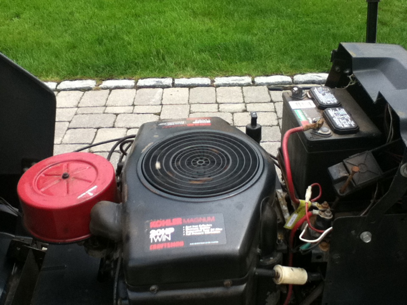 Hi, I have a early 90s craftsman GT6000 with a 20hp kohler twin. I was mowing and it blew white smoke and died, it's not ceased up, it looks like it's the starter, soliniod, or the battery. Does any body have any suggestions????