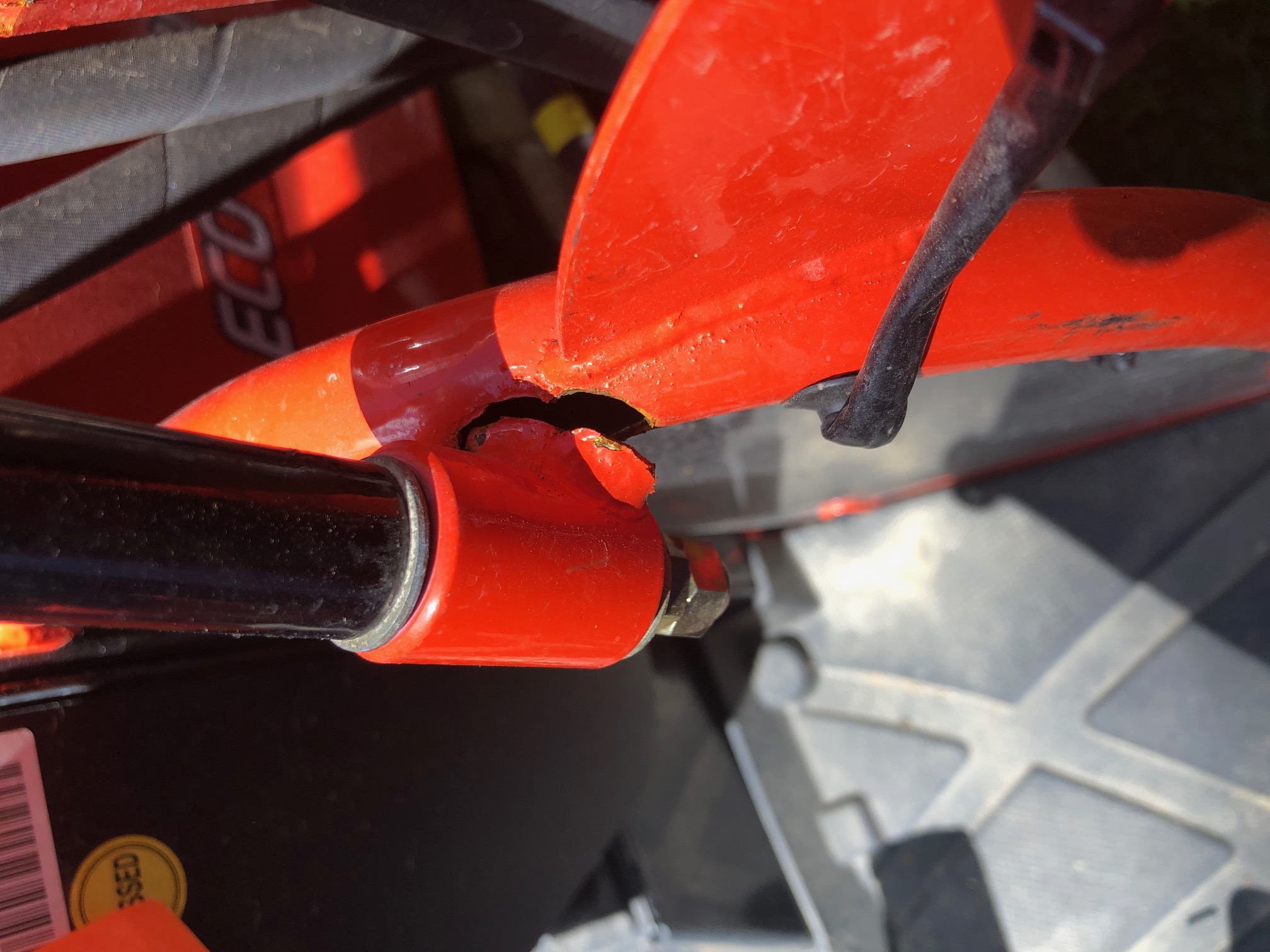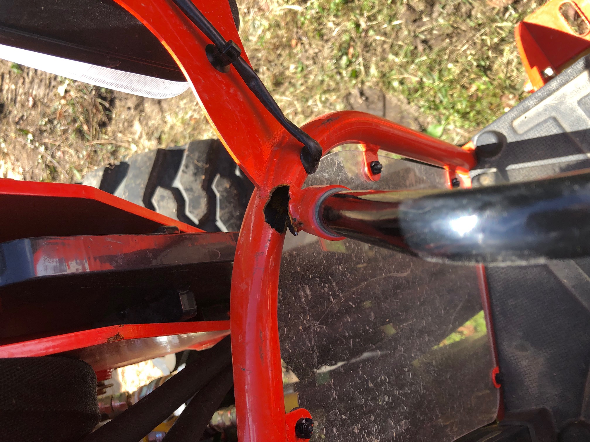 Just noticed this on my tractor last week. Ive had the tractor 2 years and 2 months. I was surprised the mirror and mount would cause a failure like this. The only thing I ever "stressed" the mount with was a pair of hearing protection muffs. Dealer said that part was only under warranty for 2 years. Just an FYI to check this before your 2 year warranty is up!