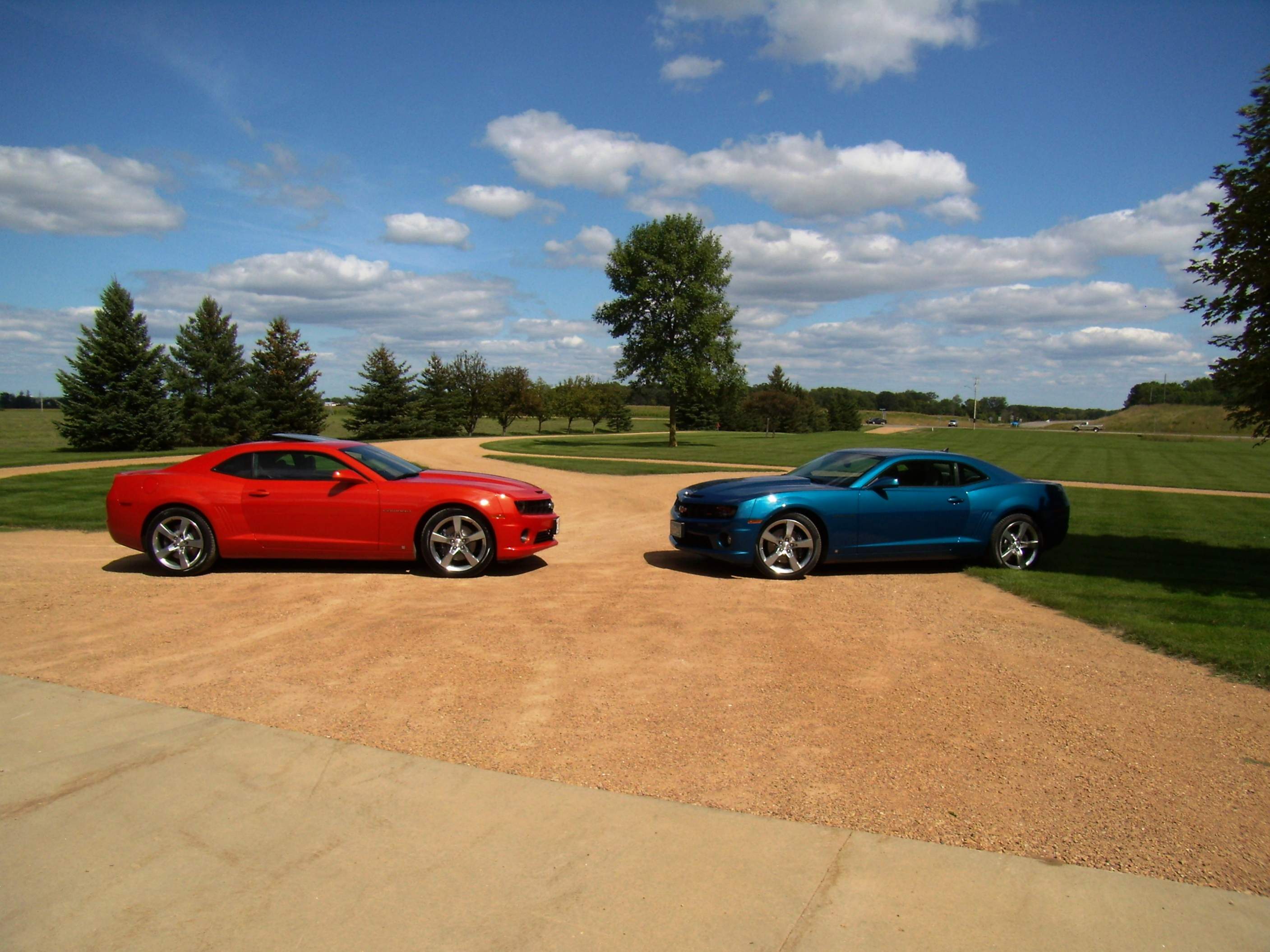 I didn't realize the new 2010 Camaro came in Kubota orange until my cousin showed up today with a perfect match to my car except for color. His wife surprised him with the car yesterday. Back in the day, I had an almost new '71 Camaro RS and he had a new '73 Camaro RS.