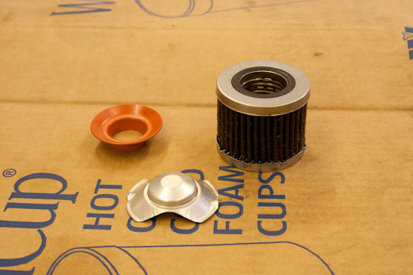 here are the main components, notice the metal filter element ends with paper gasket, though it does have the same spring as the basic filter