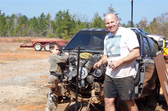 Then we got into the blazer. Off with the fenders, grill and hood, then off with everything that was in the way of getting the engine out. He was taking things off faster then I could keep up. He just loves that impact wrench!!