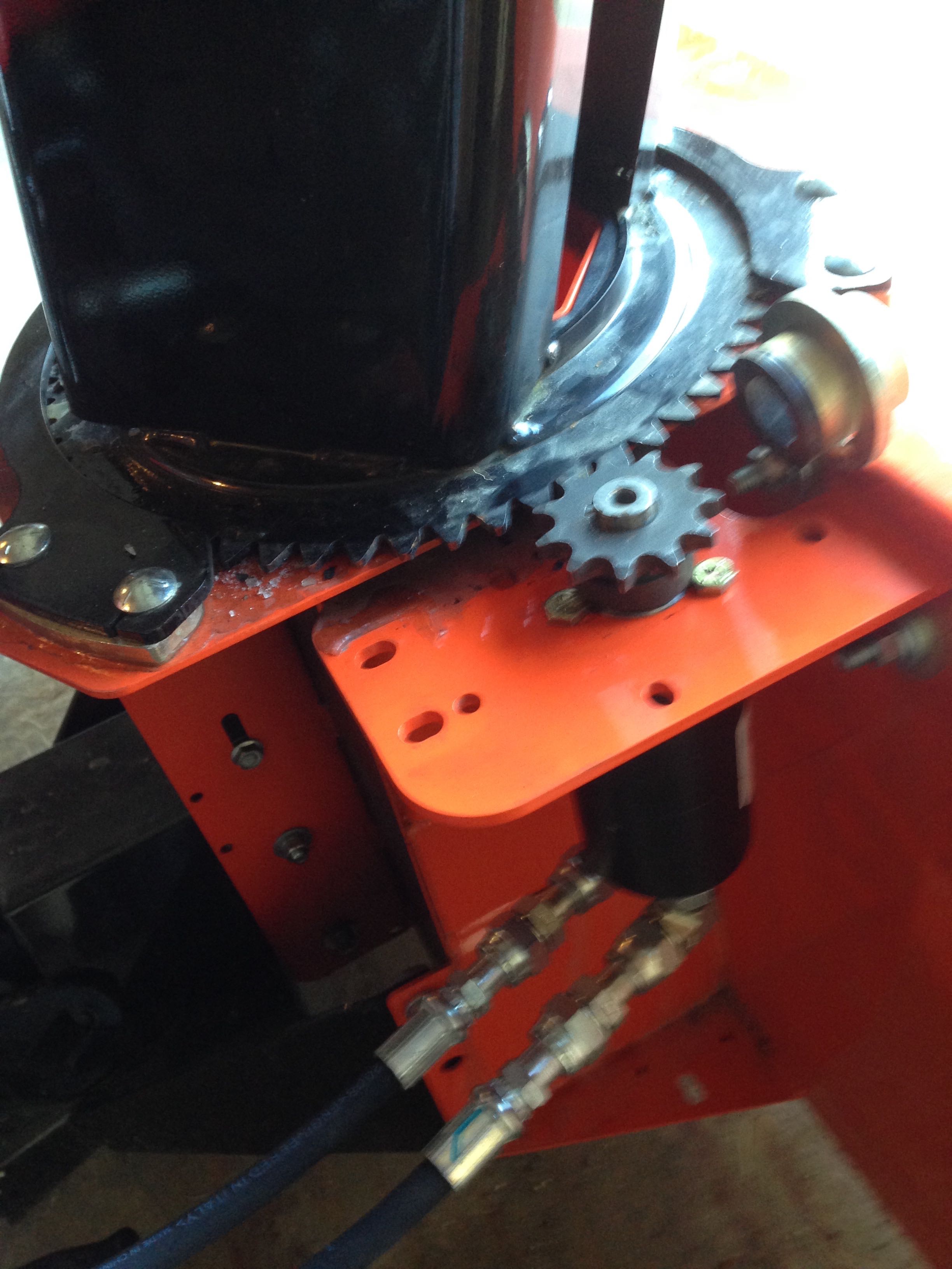 I also wasn't sure how well the motor gear/chute sprocket would hold up. My alt. plan then was to reattach the worm gear, fab a horizontal motor mount & connect the worm gear shaft & the motor shaft via a lovejoy coupler. Can't take credit for the design, I'd seen someone, I believe on this site, post their pics. Thankfully my present setup seems to be holding up well so far. We've had 5 or 6 snowfalls and there doesn't seem to be any discernible wear.