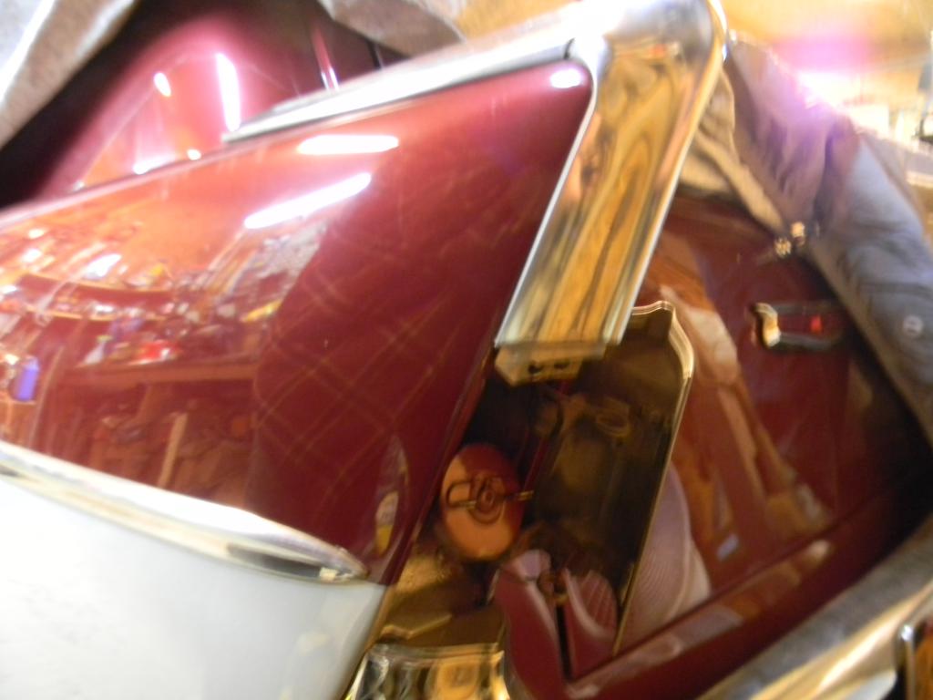 The 56 Chev filler neck is behind the left tail light. On the 57 the chrome trim on the tailfin above the left tail light flips open for the filler neck. Here's some poor pics. Car is in back of garage covered up so couldn't get a better shot. I grew up pumping gas so got to know where all the filler necks were after a while.