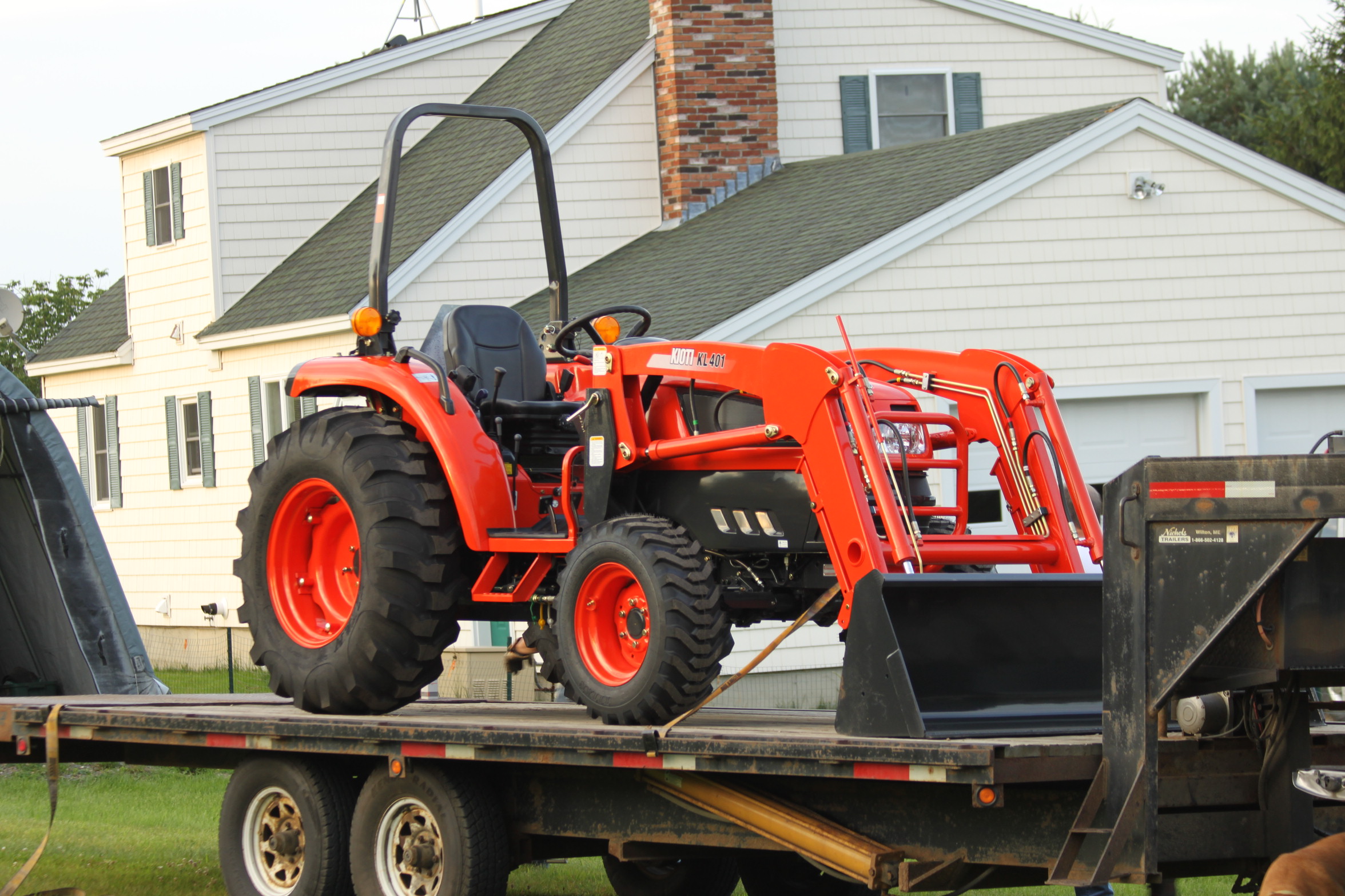 I bought a used 2006 CK30 TLB several years ago with 298 hrs, it now has about 470 hrs on it. It had an oversized loader bucket on it for snow removal. It worked well for snow removal, but it could barely lift a full load of dirt. The backhoe also had trouble breaking thru a 1" diameter root. The backhoe had the power to toss the tractor all over the place.. but the root just laughed at it. In my research I found that the bucket on the CK was a "material" bucket off of a LK3054 and it had a capacity of 9.3 cu ft, the stock CK30 bucket capacity is 7 cu ft. Add to that a heavy duty QA on the material bucket and no wonder it couldn't lift a full load of dirt. Now knowing this, I'm surprised it actually did as well as it did. So, I wanted more loader lift and a stronger backhoe and I started looking at 40 hp tractors. Green paint is just too expensive, the folks at the local Kubota dealer recommended the L4060. Nice tractor, powerful backhoe, but loader was only marginally more powerful than what I had, 1600 lbs of lift vs the 1100 lbs of lift with the CK30... and it was $8K more expensive than a DK40. The DK has more loader lift, 2700 lbs, but a weaker backhoe than the Kubota. Hmm, the Woods BH90x backhoe is stronger than the Kubota BH.. this sounds like a good combination, DK40 loader with BH90x backhoe. I contacted several Kioti dealers, the most convenient dealer gave me a bottom line quote. I asked him for a more detailed, line item, quote and he never responded. Others gave me a quote, but low-balled the trade in on my CK30.. one offered me $12K for it. I started working with a Kioti dealer 70 miles away, his price for a DK40 w/loader/2nd remote/loaded tires was $24,500. It also included delivery of DK and pickup of CK, free deliver/pickup of tractor for 50 hr service and labor for 50 hr service.. I have to pay for parts. He also gave me the highest amount of trade-in for my CK, $16K. None of the Maine Kioti dealers carry the Woods backhoe, so I worked out a deal with a Kioti dealer in Mass that carried Woods products. I signed the papers for the DK40 on yesterday, the tractor is to be delivered next Friday.![]()