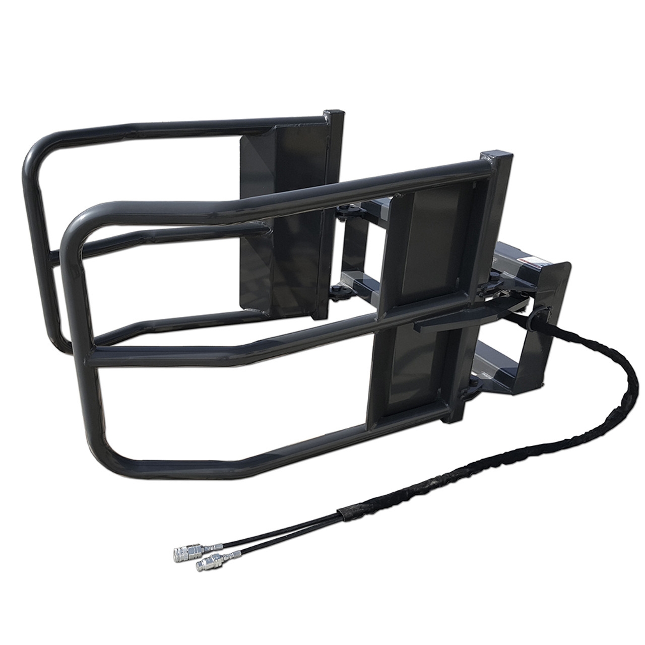 I’m planning to make a bracket that bolts to the rack on my pallet forks that has a single bale spear in the center. That way the forks support the bottom of the bale and the spear keeps it from sliding off. You can buy a single spear on Amazon fairly cheap and fabricate a bolt on bracket that can be removed when you want to use the forks for other purposes.