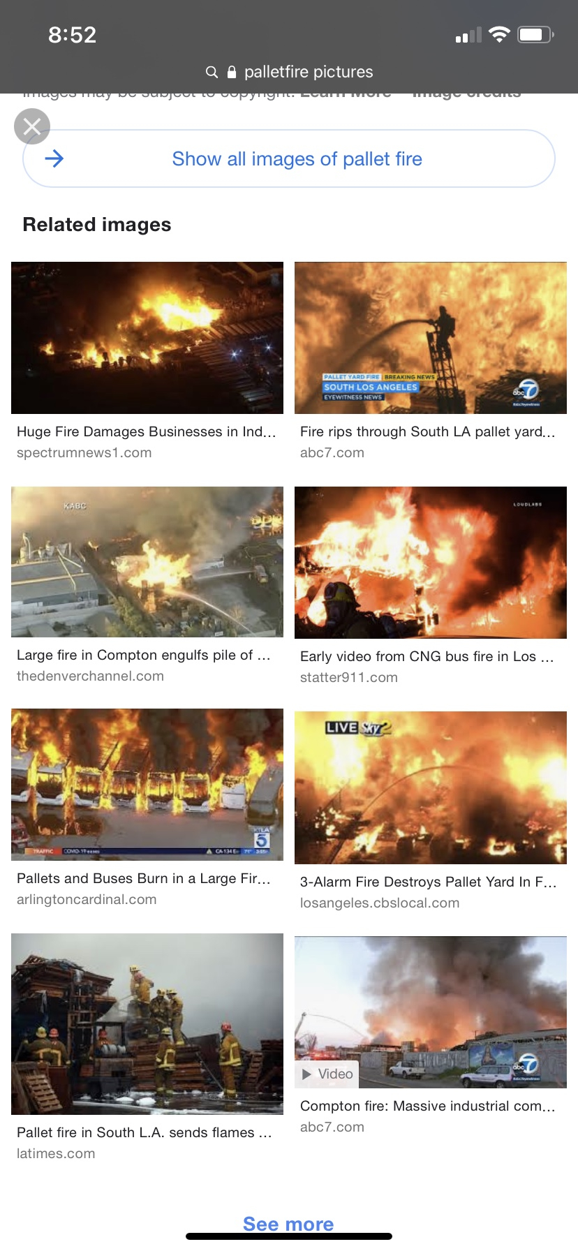 It just dawned on me! A considerable number of pallets are actually alien terrorists who are burning themselves up! I hope they don't store them near any explosives!