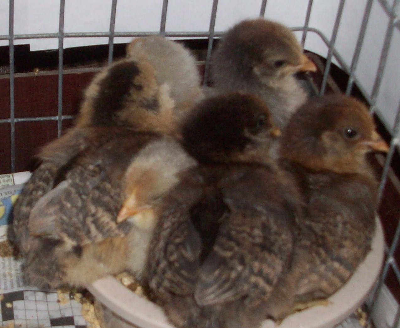 One of the chicks we named "Fiesty" flapped her wings and hopped up onto my hand today. She then made herself comfortable and didn't want to be put down. Too funny.