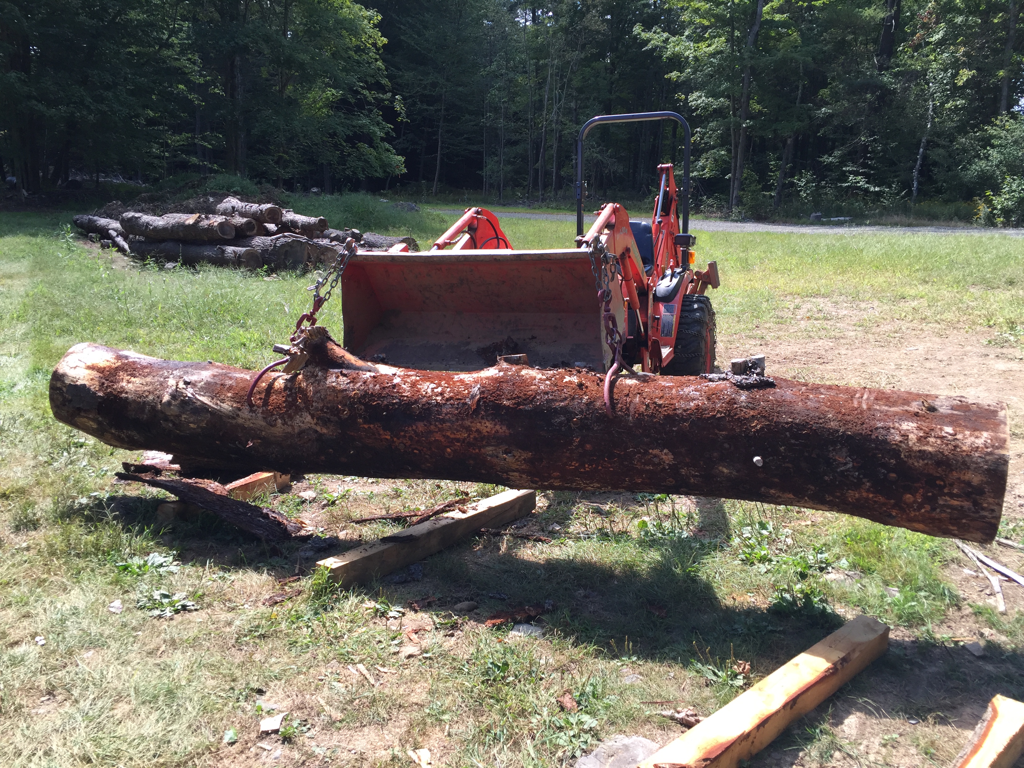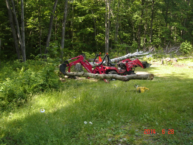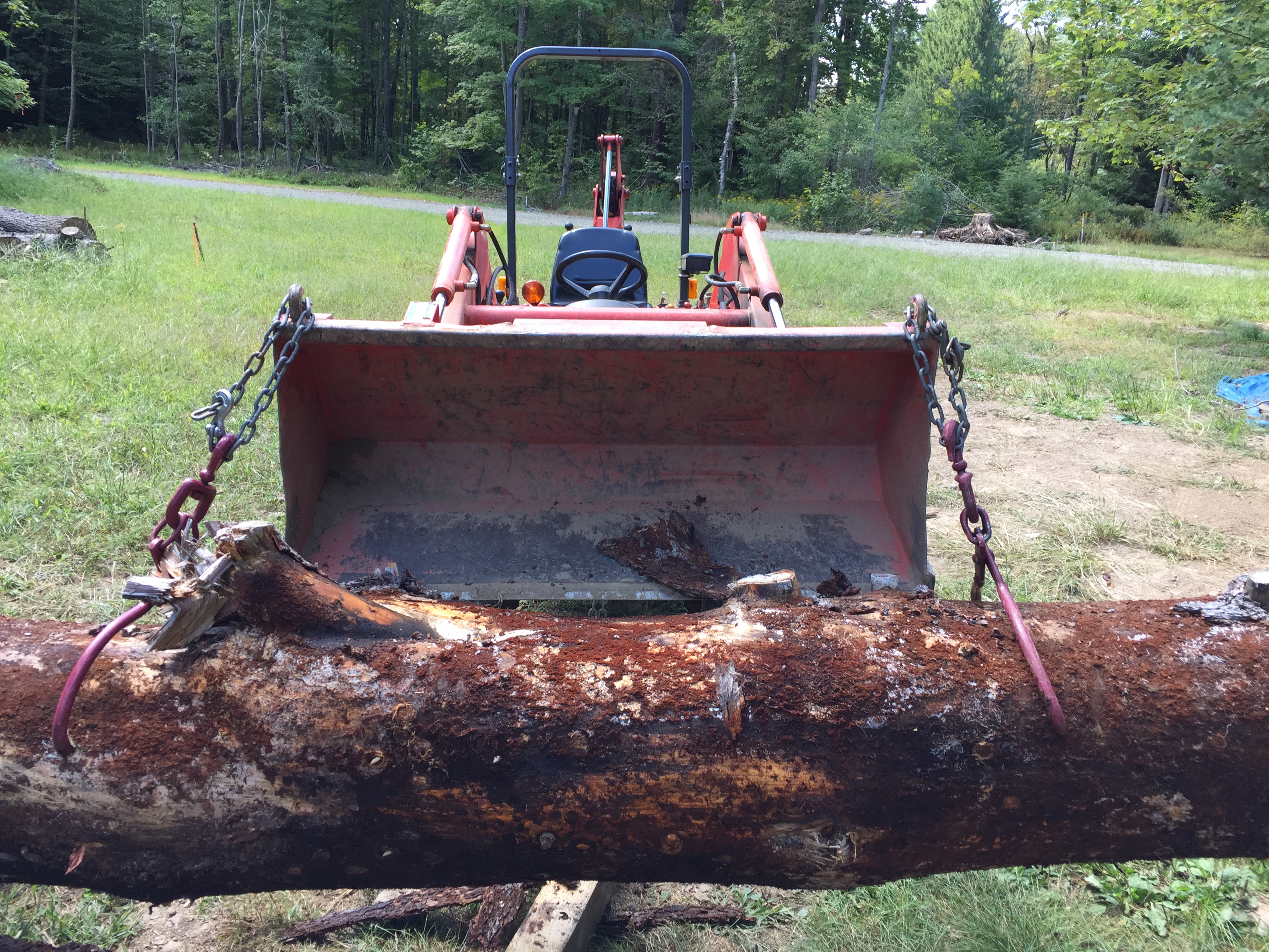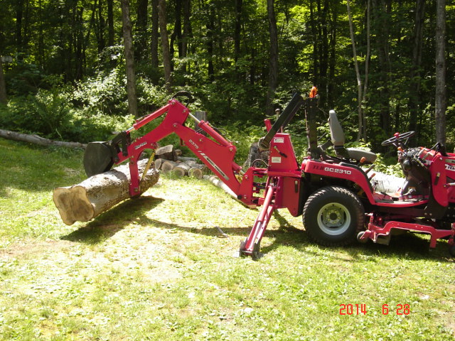 Ok so I have a gc1720 loader/backhoe. I have been burning firewood for a couple of years now but I've been buying split wood. I decided to get some log lengths wood and do some splitting myself. I purchased a dirty hands 35 ton splitter(was thinking of getting rugged made) from Lowes and got the extended warranty. Got a nice Husqvarna chainsaw and good to go lol. Ok well my firewood is in a good spot so I don't have to move it around d far. I hook a chain to a log and drag it like 30 feet to my cutting area. Now I want to pic up the log about chest height so I can cut it nice nice.