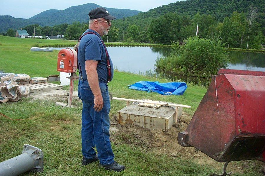 Uncle Dave wanted a flagpole down by his pond, for another American flag and a Marine Corp flag also.... now just gotta wait for the concrete to harden up !![]()