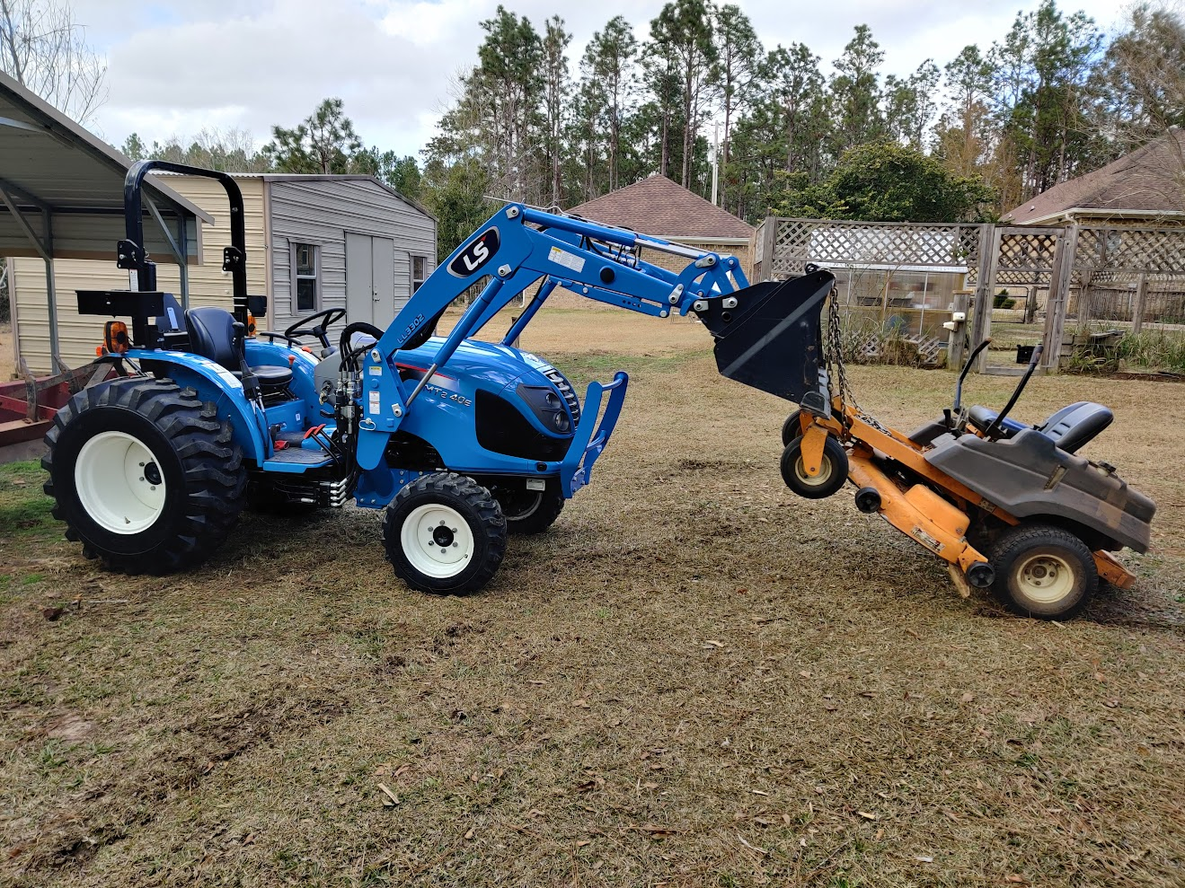 I hooked up the chain to the axle, as low as I could get it, and then I pulled it out VERY SLOWLY, and I kept the bucket as low to the ground as I could. The tractor was just one year old when this happened, and all I could think of was having to make payments on it after I destroyed it.