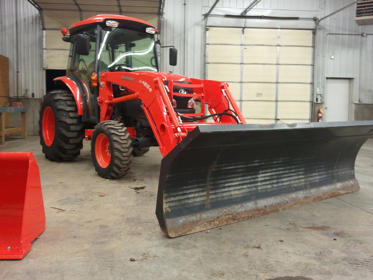 This is my newest snow machine in the making. Just picked it up yesterday. 2012 Kubota L5740 Grand, with every option minus radio. 9' skidloader hydro plow with extended moldboard.