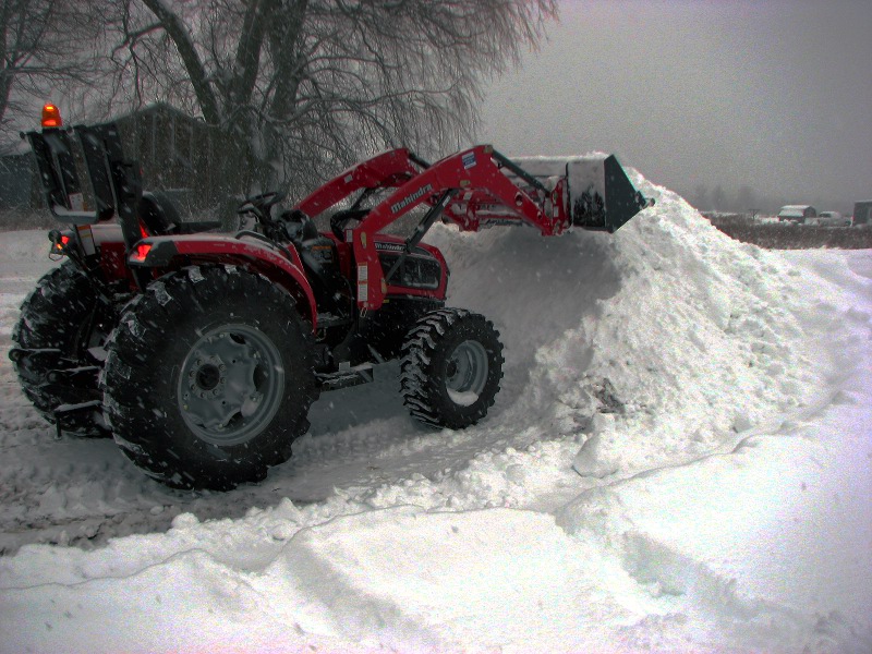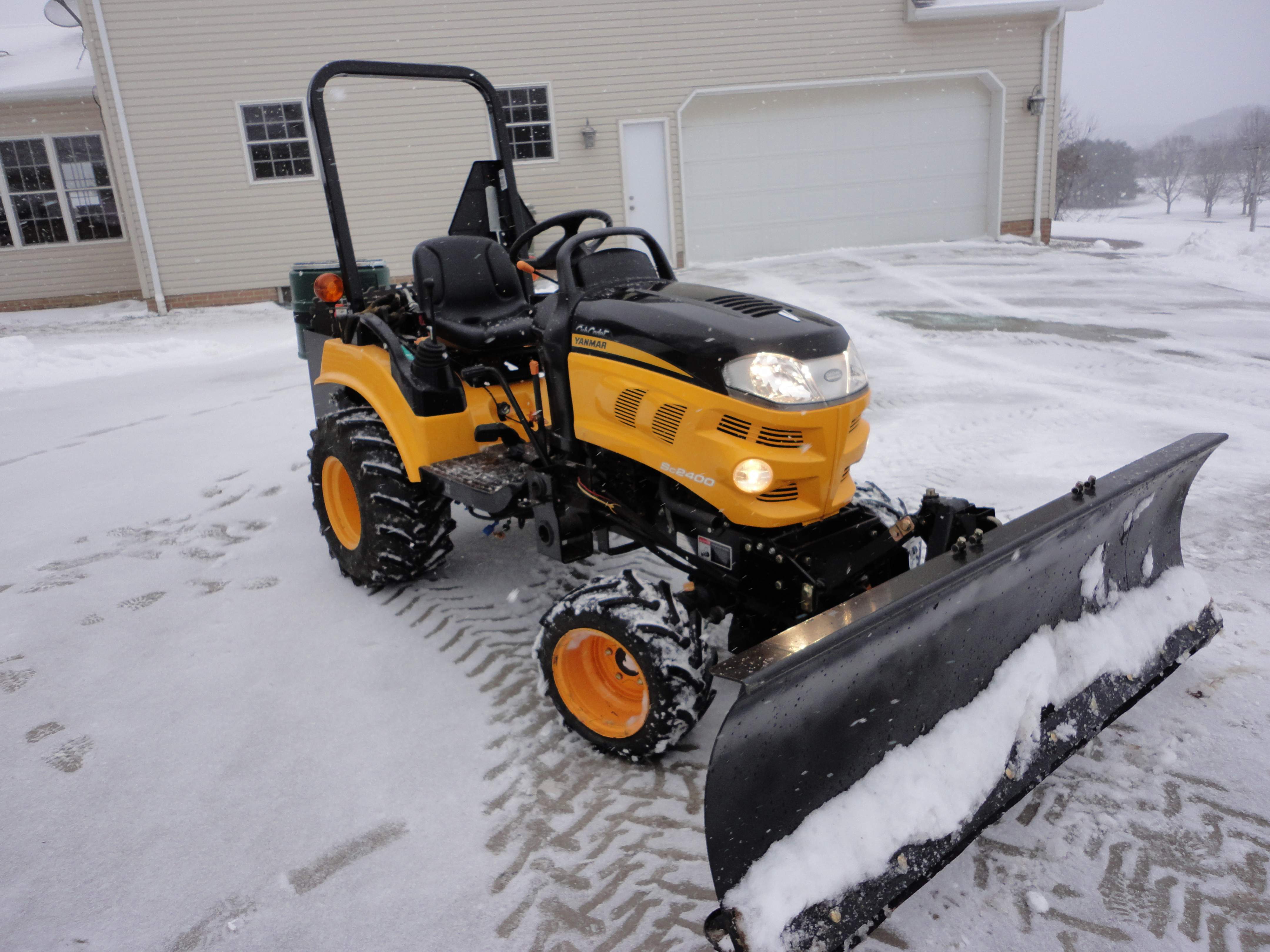 tried it all out yesterday, works great! I've got a very steep driveway, after a few trips spinning tires coming back up, it got SLICK.......so loaded up the salt, and used the spreader...worked like magic. The tractor usually takes a 5' blade, but I mounted a 6'....works like a champ. Really like the rubber cutting edge, like a big squegee. The salt spreader sticks out the back of the rig a bit far, so have to be cautious around buildings.