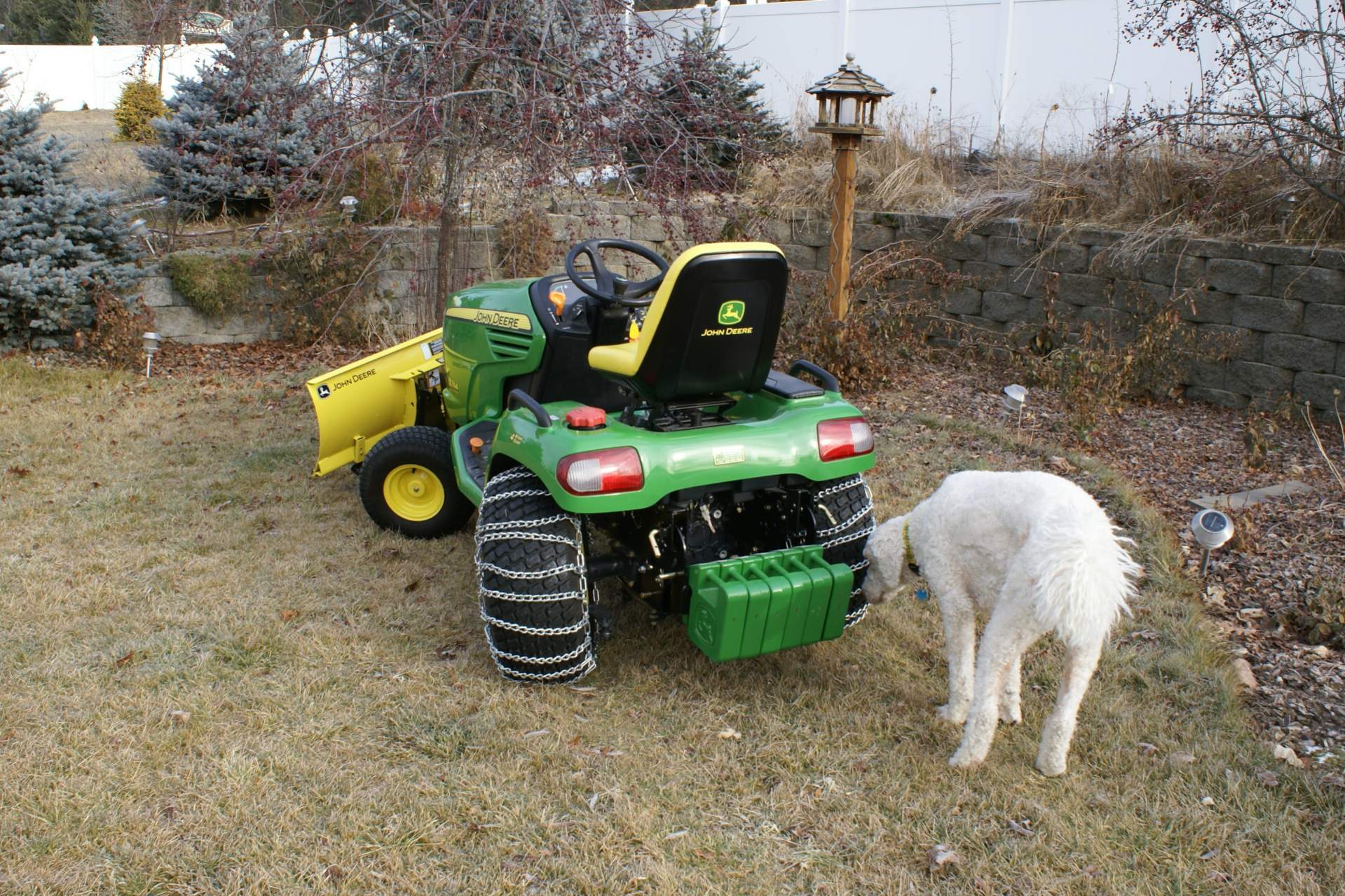 OK.....FINALLY we got some snow in NE Ohio, and FINALLY I had to break down and get the snow machine ready. Took the loader off, mounted the front hitch. Put a 1" rubber cutting edge on the blade. Mounted the salt spreader on the weight box, and ran the wiring.