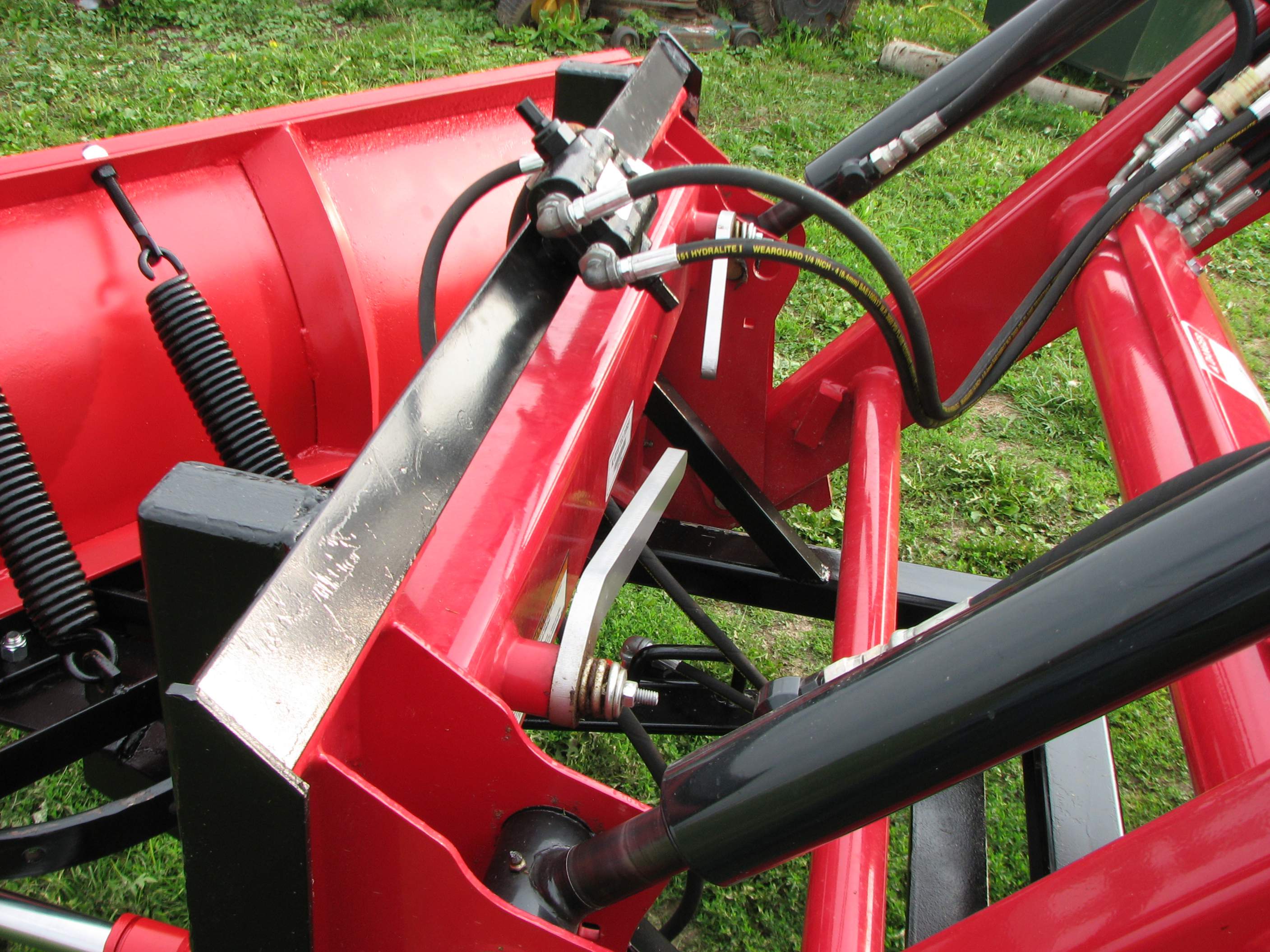 I added a second set of plow shoes not shown in the picture close to where the QA meets the snowplow frame. That enables me to put the FEL in float while plowing. The plow can then travel over irregular surfaces without digging in too deep.