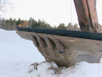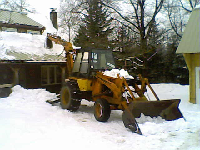 Last winter I posted this photo of me shoveling the roof of my porch with the backhoe. I was very careful and didn't have an "oop's", but I have been known to have them.