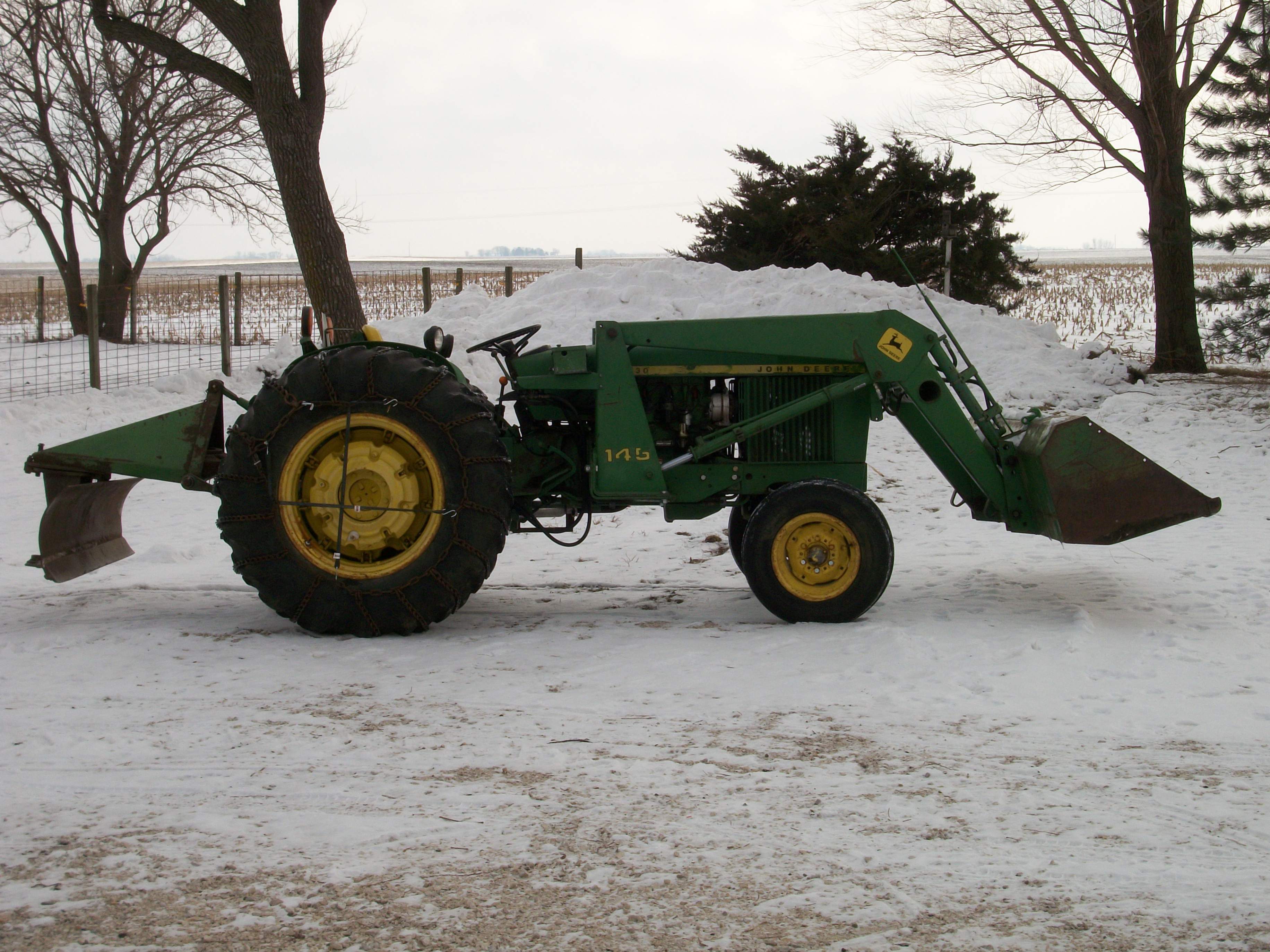 This is my newest snow mover, 74 JD 2030 with a 145 loader and 7' JD rear blade. I bought it this summer, it had been sitting in a barn for 6 years and was covered in 1/2" of pigeon crap. It took a month or so and some $$$ but I got her going, still working out some of the bugs. I sure beats pushing with my old JD 60 with a hand clutch and trip bucket!
