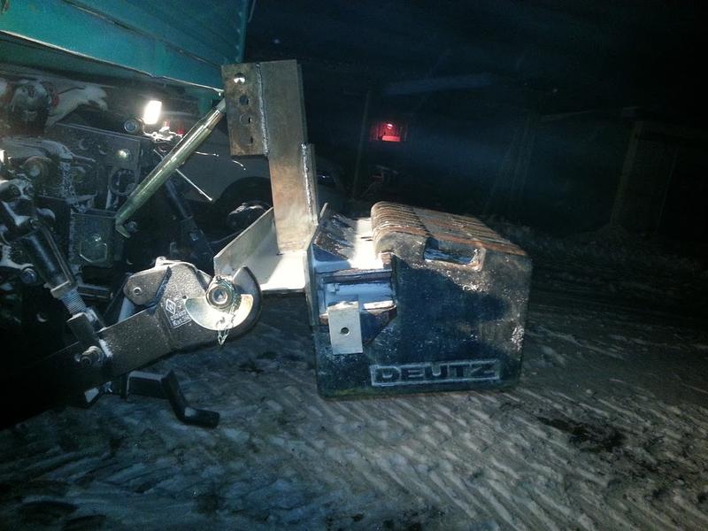Out back 1500lbs of counterweight I got in trade for helping a neighbour out. It was the weight rack from an old Deutz tractor that burned up and he converted it to a 3pt mount for me so I can run it front or rear (I have a 3pt for the front of the Unimog as well). It lives on the back all winter, it's just good to have some weight back there even without the plow on the front. Weights are of course removable so I can lighten it up to match whichever implement I have on the front/back.