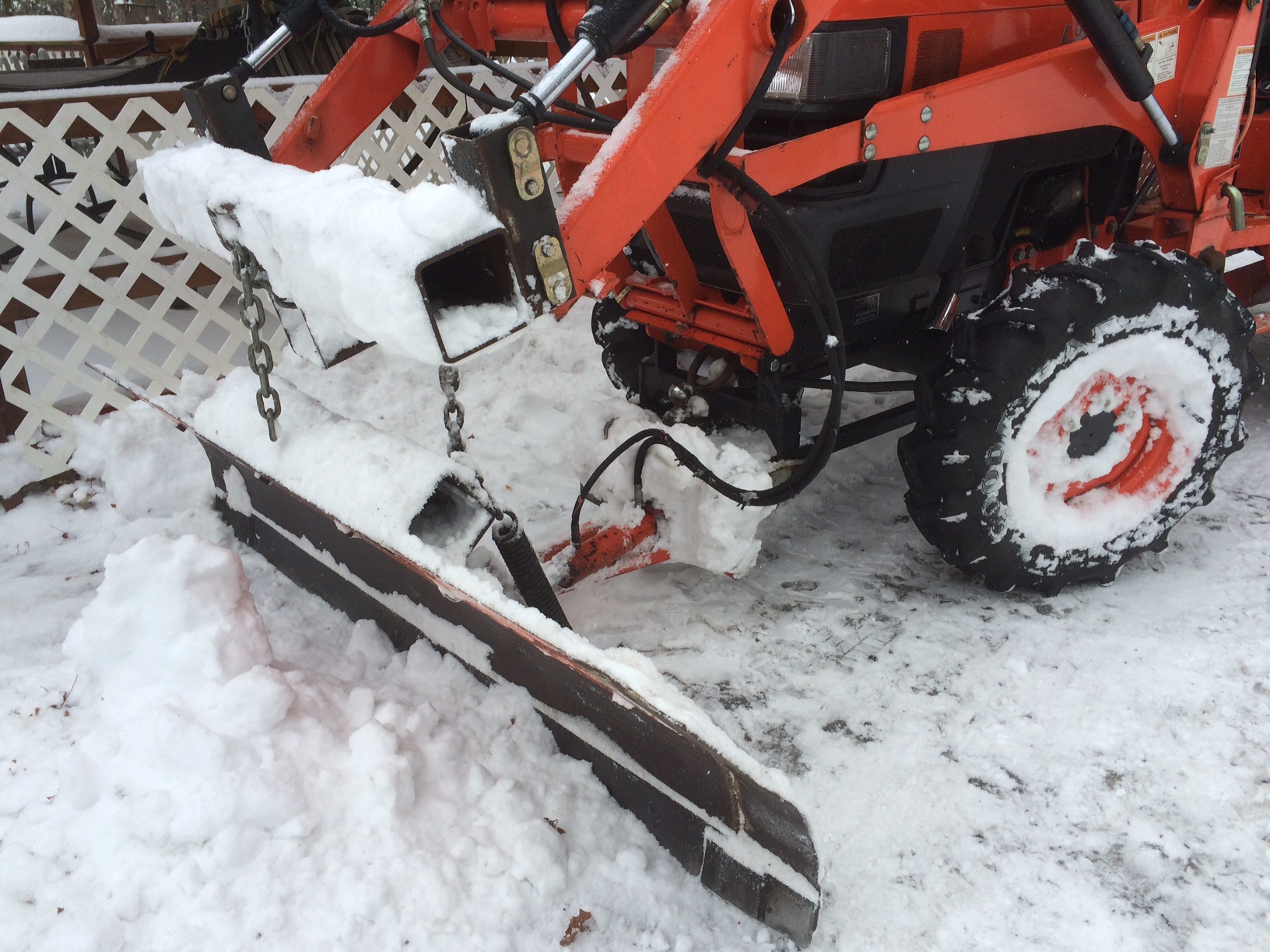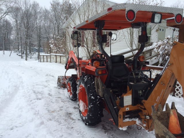 h. So that winter after finishing the house I am looking for a used back hoe I could pay cash for and on the way to look at an old junker, the wife riding along says "I rather you just buy a new one and not have any maintenance headaches". In a few hart beats I did a 180 at the next exit n turned around and when directly to the local Kub dealer. It was January, perhaps the best time to buy ground digging tools. The first one I looked at was 24 months same as cash. I made part of the deal that I only wanted my wife's name on the loan n title so we could build up her credit just to make this a muti purpose purchase n make the wife happy..... It was home in our driveway in a few days. And now some 8+ year later if has just south of 250 hours currently and below are a few fresh fotos from the last storm.