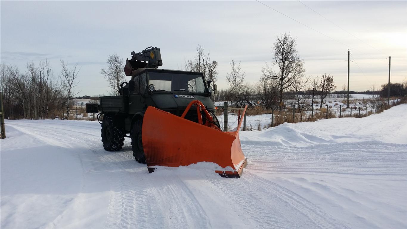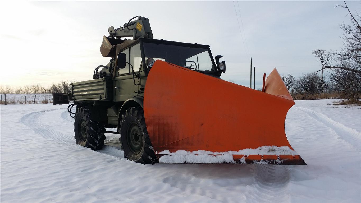 Last year I was using a bigger Unimog (now sold) and I happened into this Unimog 406 EX-BW Cabrio "bagger" (backhoe, or excavator in German) for a replacement. Much different Unimog than the square cab but I really like it. Soft top is actually pretty weather proof, I was surprised.