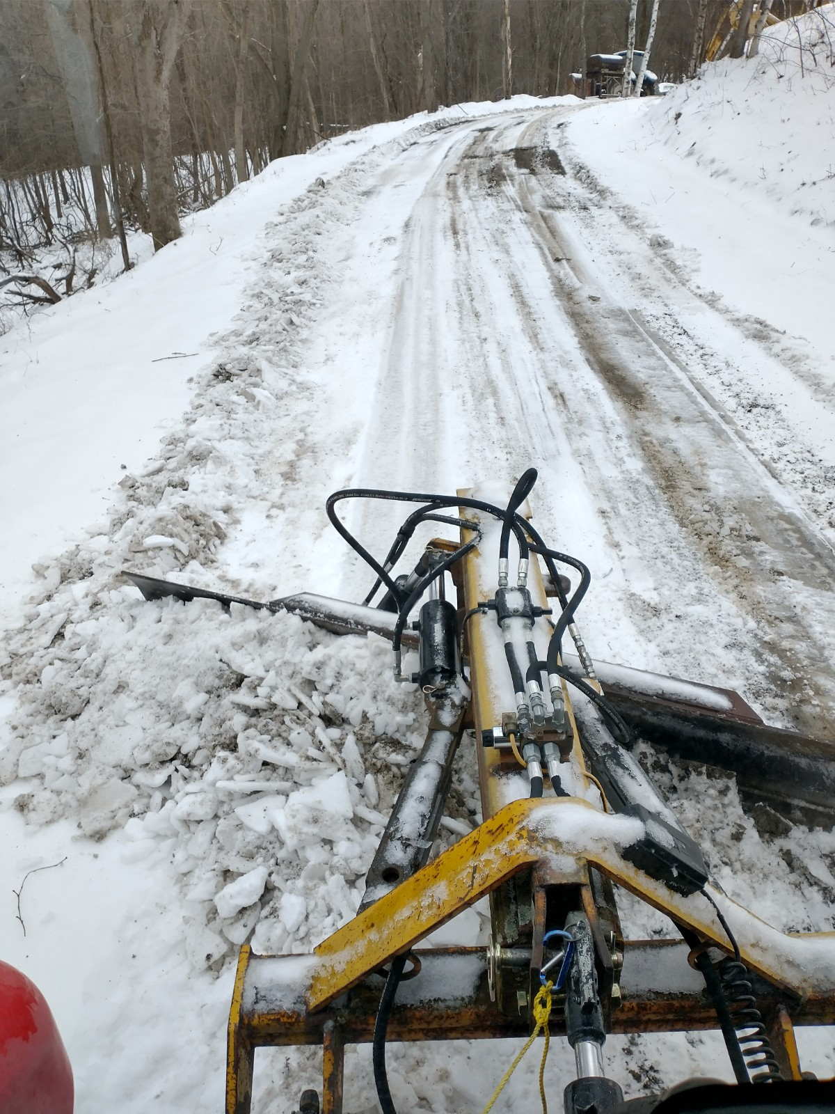 In the snow industry we make sure we get into the tractors with dry shoes and do not get out. I have a broom in my barn I sweep my feet with. When that snow melts it will fog your windows. This may not be as much in yours as our industry. I also run a 12v fan on my back window when icing up on the outside. Fan on the tractor is full bore all the time. Dries my nose out after a few hours of work.Got 6" last night so I got to put the T254, Bercomac blower and cab into action this morning. Neighbors were impressed that I took their end of driveway stuff and threw it across the road into the wind. With the cab, the snow didn't end up in my face. It's not heated but you do get a little heat off the engine that takes the edge off the cold. Was pleasantly surprised that the plastic windows didn't ice up. They seem far enough away from my body where my breath doesn't end up on the plastic, plus there is plenty of ventilation. The blowing snow does not have direct access to you but you do get a little from underneath and from the vents in the sides of the top. So far I'm quite tickled with the setup, just need to fix the loose nut behind the steering wheel so that it gets more efficient.