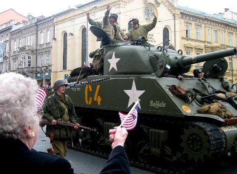 Those are guys from military clubs, they maintain military vehicles and haul it to Pilsen every year to be in that parade.