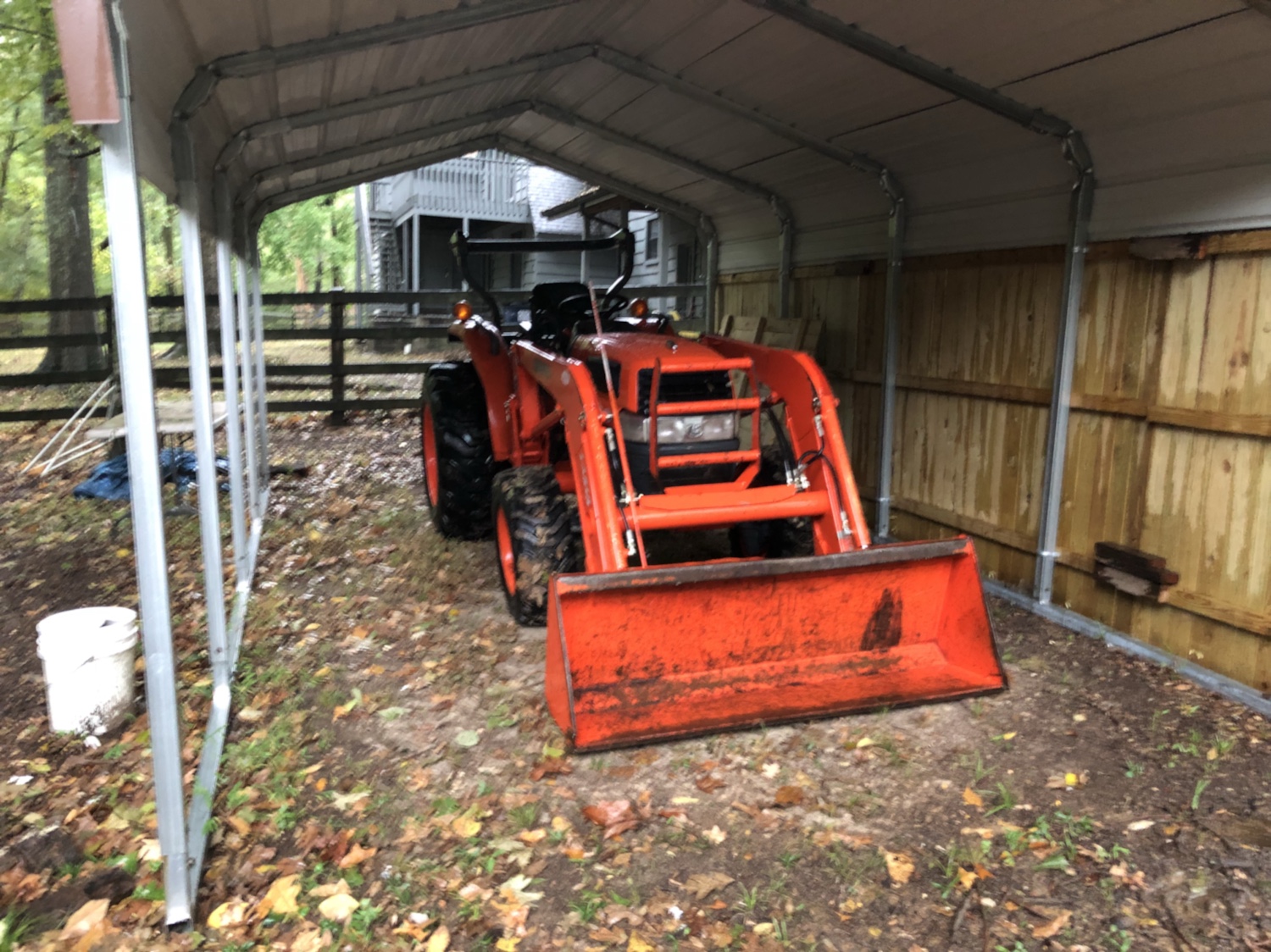 No implements yet, but plan to get a brush cutter first ( not sure if 5’ or 6’ though) then a grapple and 3rd hydro hookup. I do have to check if the back tires are filled. If they are not I will have to get info on how to fill them.
