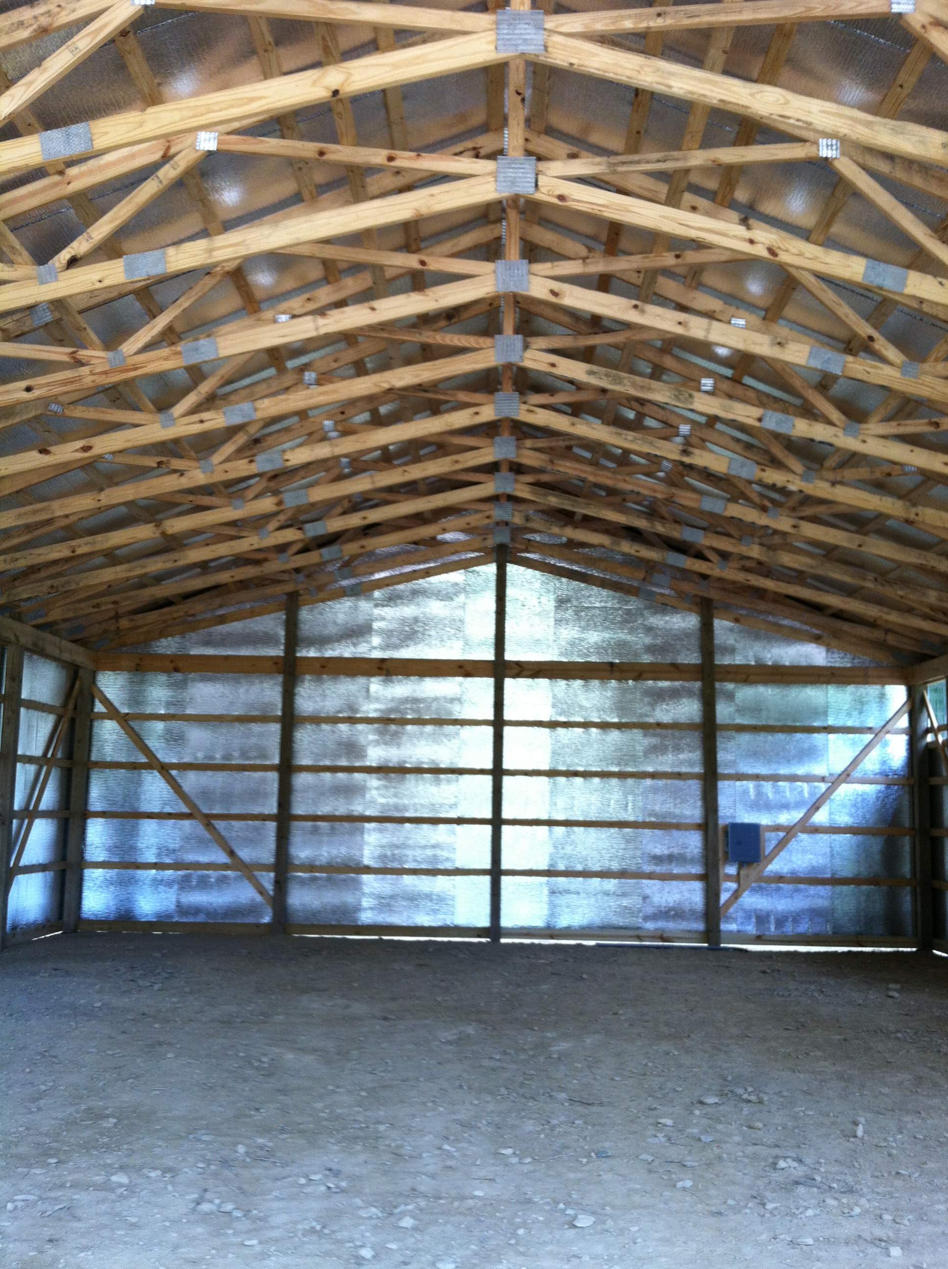 In looking at your completed photos, I can tell you ALL of the roof truss bracing has been left out of the building. At a very minimum, there should be 2x4 lateral bracing every 10 feet across the truss bottom chords. If you want to Email me a copy of the engineer sealed truss drawings, I would be happy to review them for free and advise as to what the requirements are. This is a serious situation and could result in a failure under wind or snow loads.Barn is constructed, now all I have left is put up a new 12x12 OHDoor, rough in the electrical, dirt and gravel pour a slab. National barn Co. did a superb job. they completed it in 5 working days.View attachment 322843View attachment 322844View attachment 322845View attachment 322846