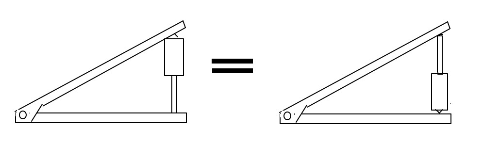 If the cylinders are turned around so the rod end is up, it will not lift more or less than before. It extends (strong motion) to lift whether the rod is up or down.