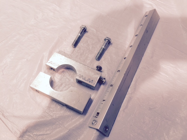 The aluminum flat is bored to fit the cylinder rod and about 1 3/8" from the end. Two holes drilled each 7/8" off center of the bore for 1/4" x 1 1/2" hexbolts.