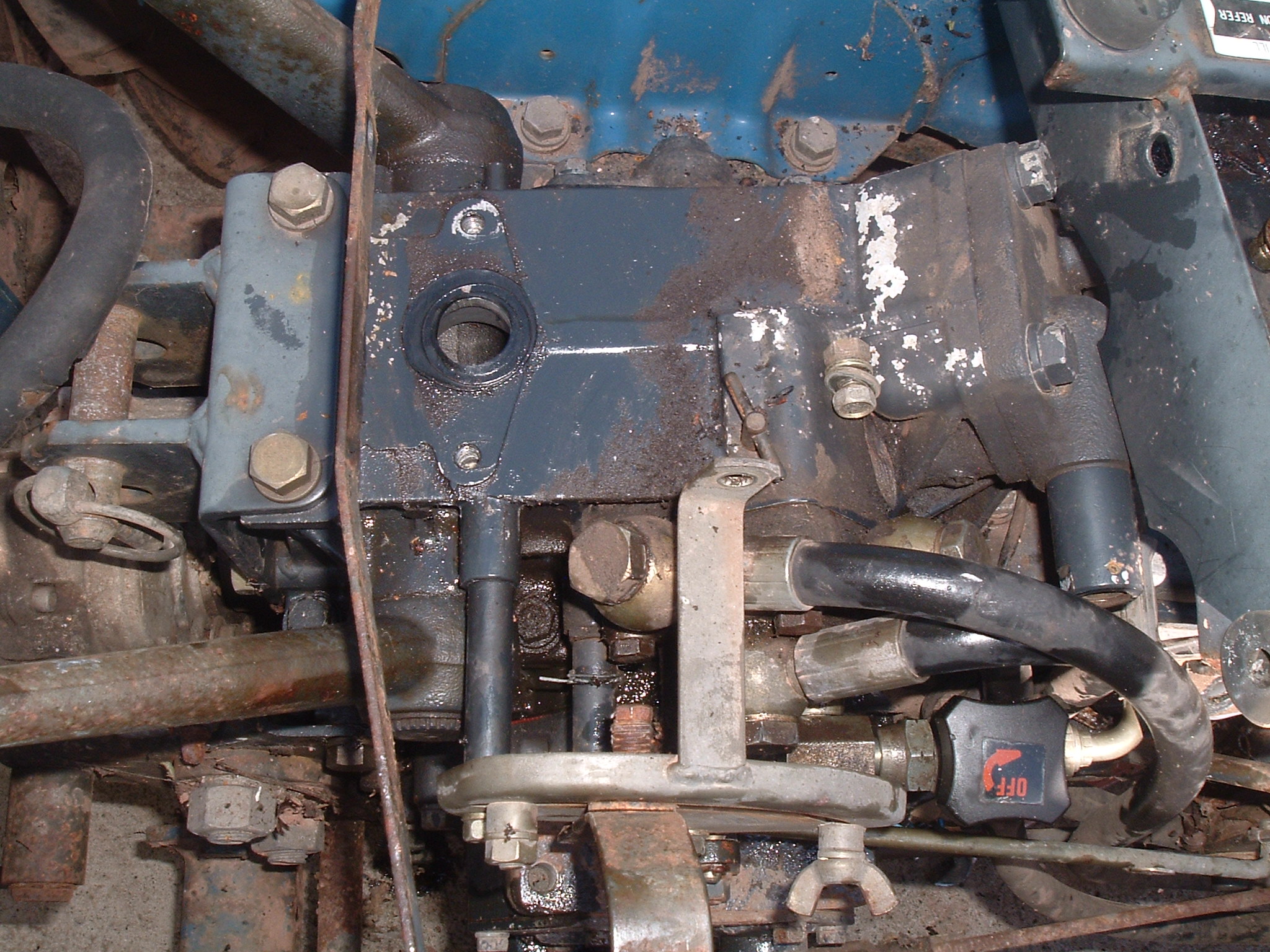 It would appear from the limited amount of stripping down done so far, I need to access the PRV inside the main gearbox, but simple things first, I've got extra fittings together to fit a needle valve and gauge on the output side of the hydraulic pump as shown below. Luckily there is a pipe connection between the exhaust pipe and steering box which is used for splitting the tractor to access the clutch. For anyone else going down this route, the pipe threads at this connection are not BSP, but Metric M16x1.5mm.