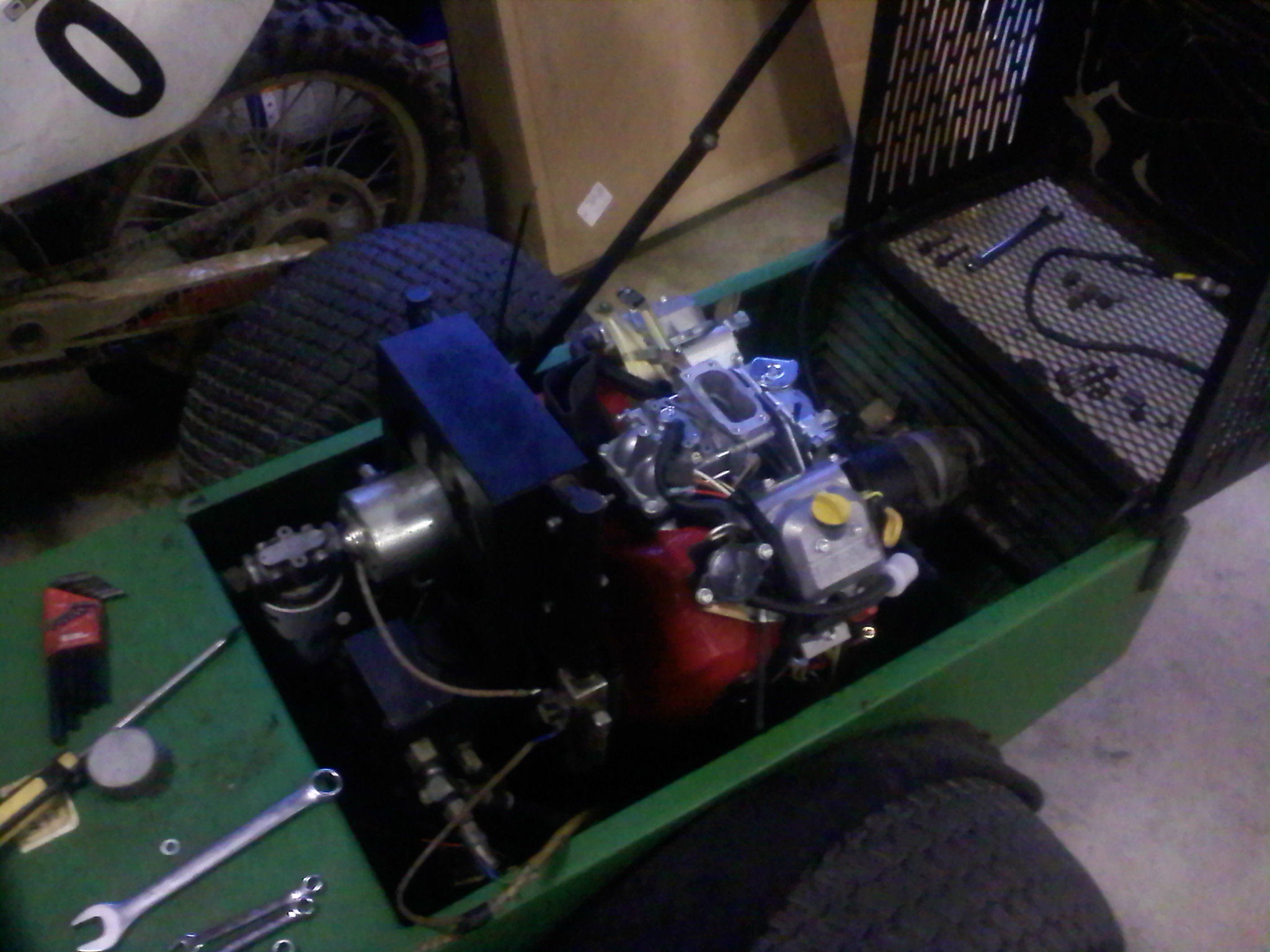 I am in the process of changing my engine on my PT-184. It originally had a 18hp briggs opposed cylinder engine and I'm upgrading to a brand new 23hp briggs V-twin. I would of liked to of stayed with an oppossed cylinder engine (direct bolt up) but they do not make them anymore, so I had to go with the V-twin and do a little re-enginering on things because of the size differance of the two engines. My Father bought this tractor new in 1995 (i think). I bought it off him in 2002 when he got his PT-422. It has been a great tractor, I never had any problems untill the engine went. With the price of new tractors and the attachments (bucket, mower, snowblade) and the lack of my bank account, I decided to get a new engine.