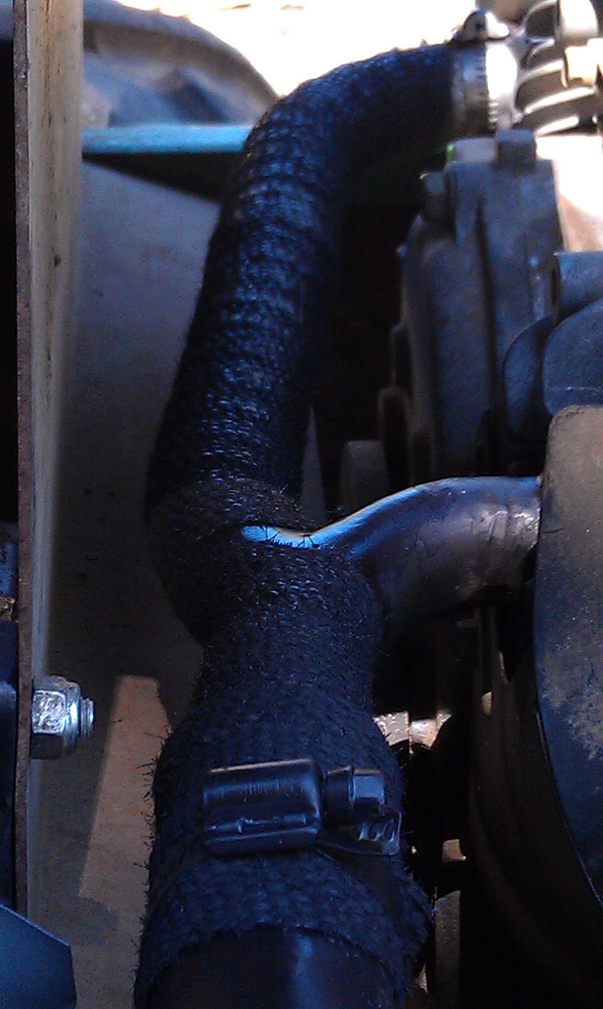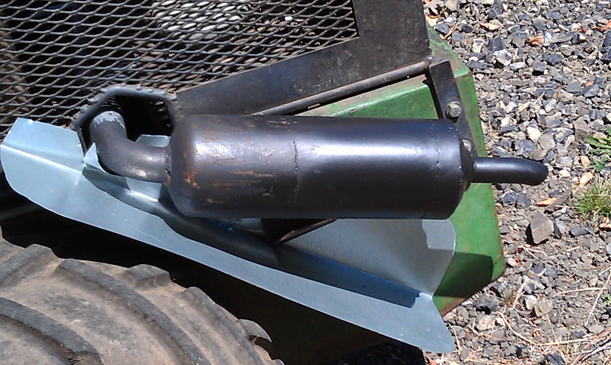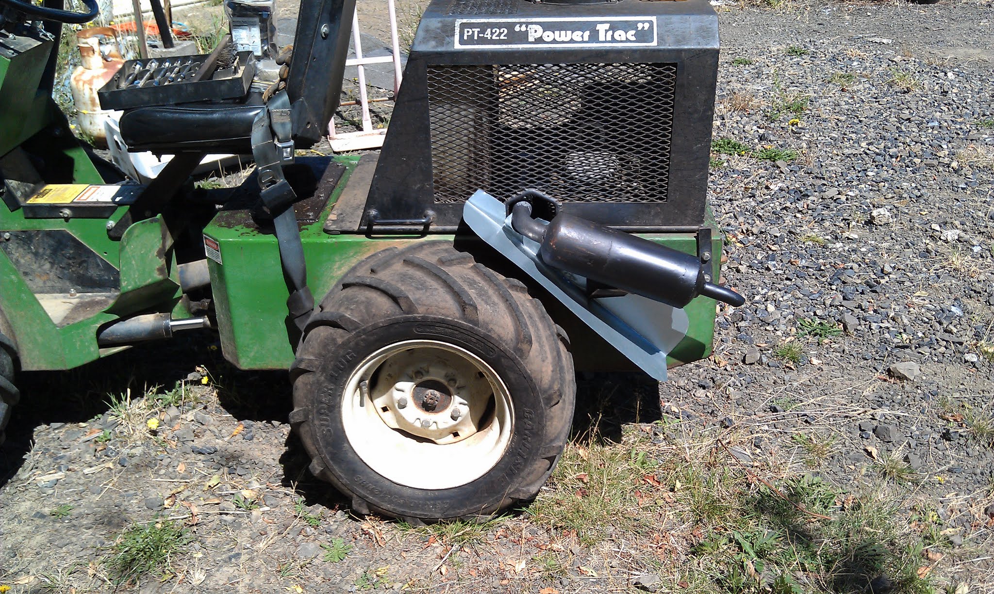 This is a pict. of the "finished" product. My nephew was appalled at the racket the pt made when running so he decided to do something about it. Parts are some pieces of motorcycle exhaust pipe, some stainless pipe from milking machine and a used up fire extinguisher that he cut apart to add baffles and muffler packing.