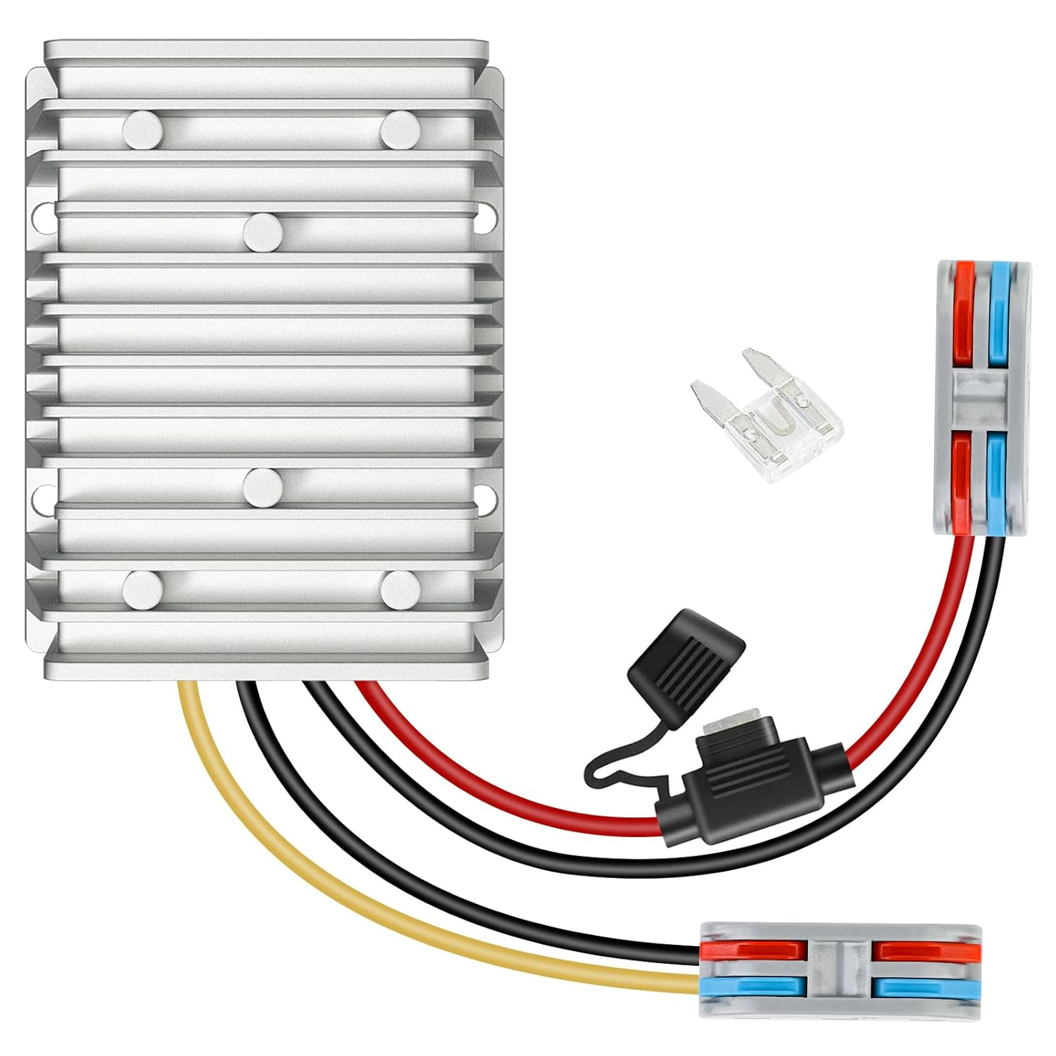 It will convert any DC voltage between 18 and 60 volts to 12 VDC up to30 amps.