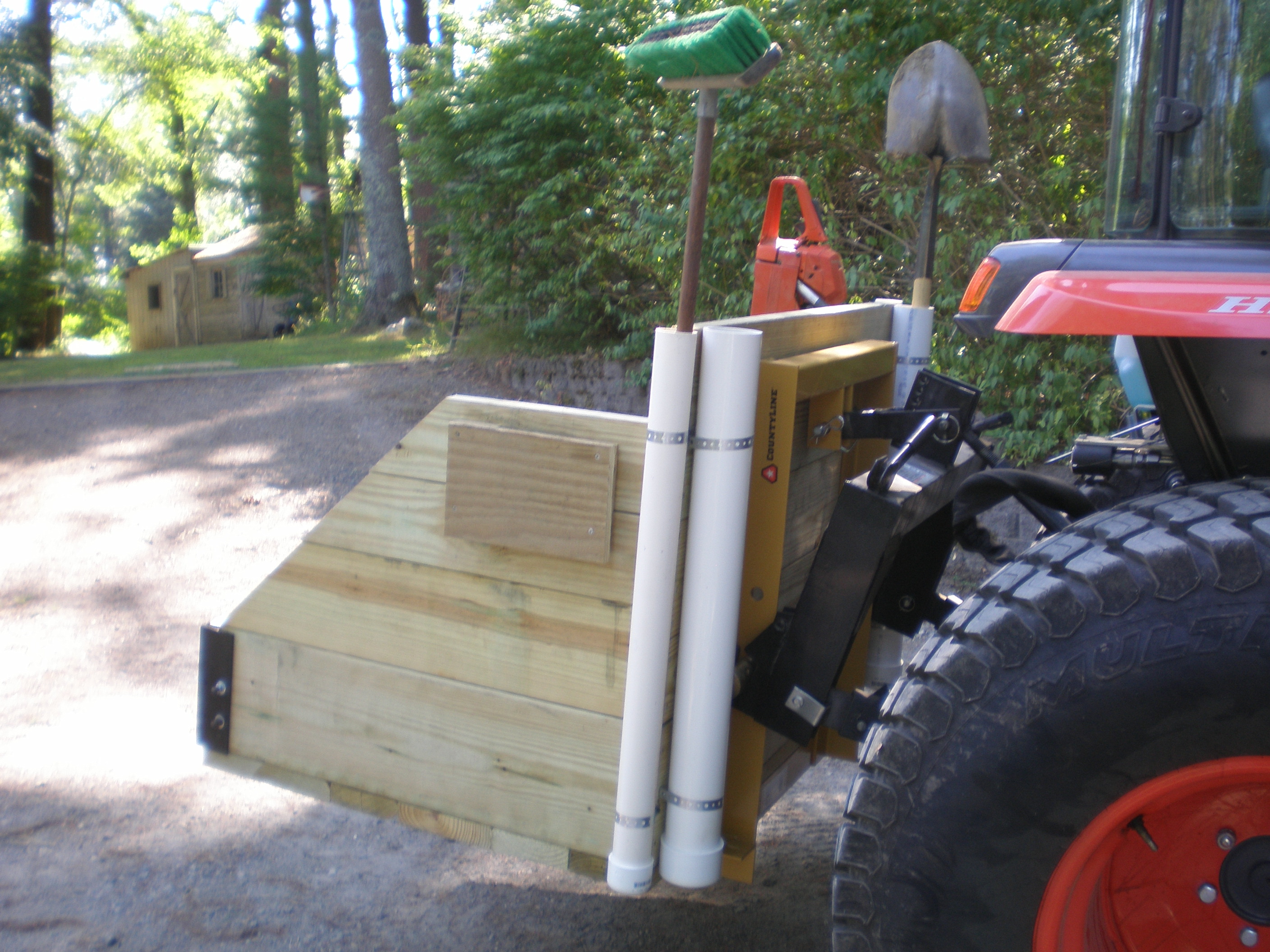 I really enjoyed your video on the carry all and couldn't wait to make one for myself. I changed a few things, like I added some PVC pipes for holding long handle items like shovels, rakes, brooms or hoes, and I put the chain saw holders on the sides and outside to leave room inside for other things. I also put a tailgate on so if I carry things other than logs they won't fall out.